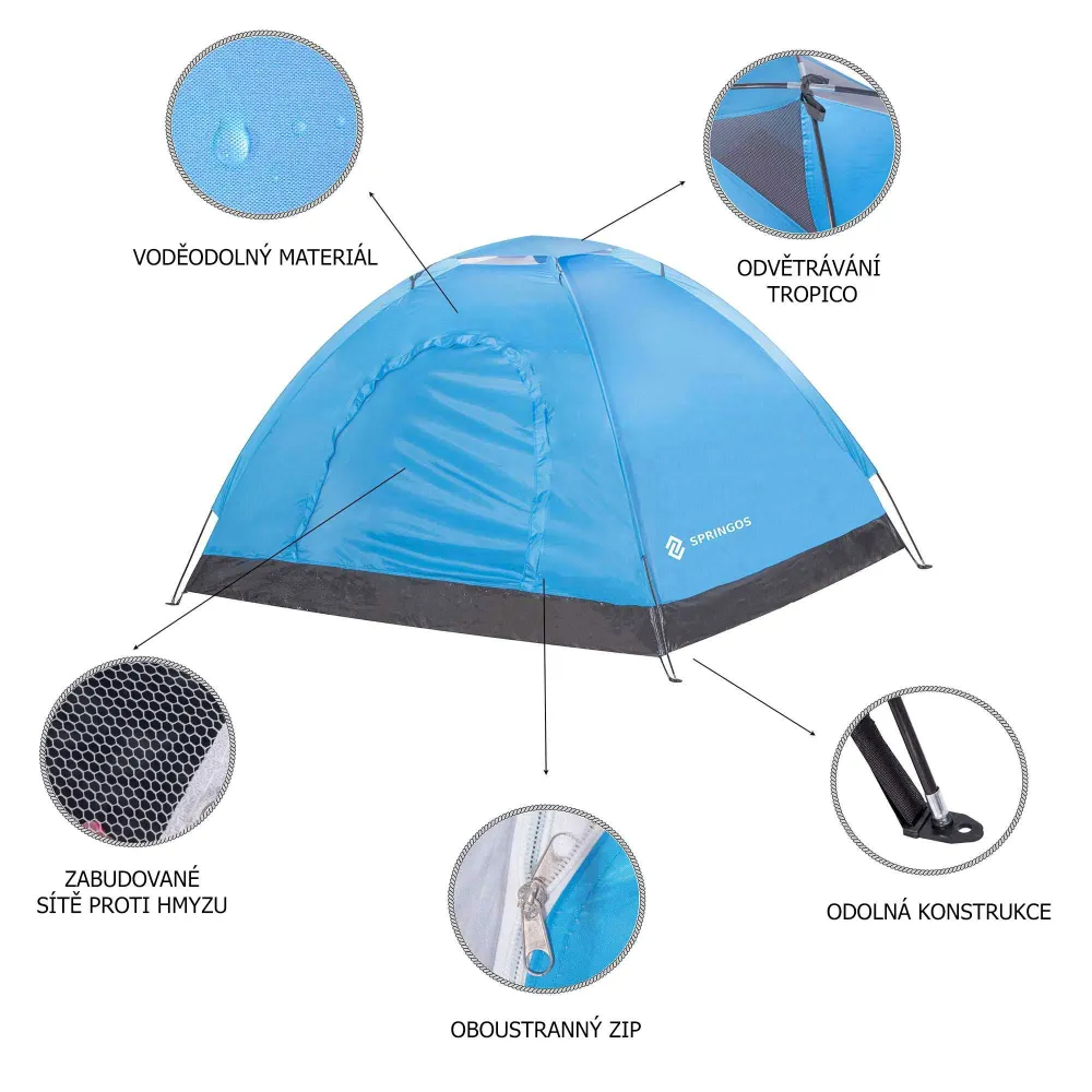 Jednokomorový stan je základným prvkom pri kempovaní. Rýchlo rozložiteľný a ľahko prepraviteľný produkt vám umožní relaxovať v prírode. Produkty Springos sa vyznačujú odolnosťou a vysokou kvalitou špeciálne vybraných materiálov pri výrobe. Každý, kto si tento stan vyberie so sebou na cestu, na neho bude rád spomínať