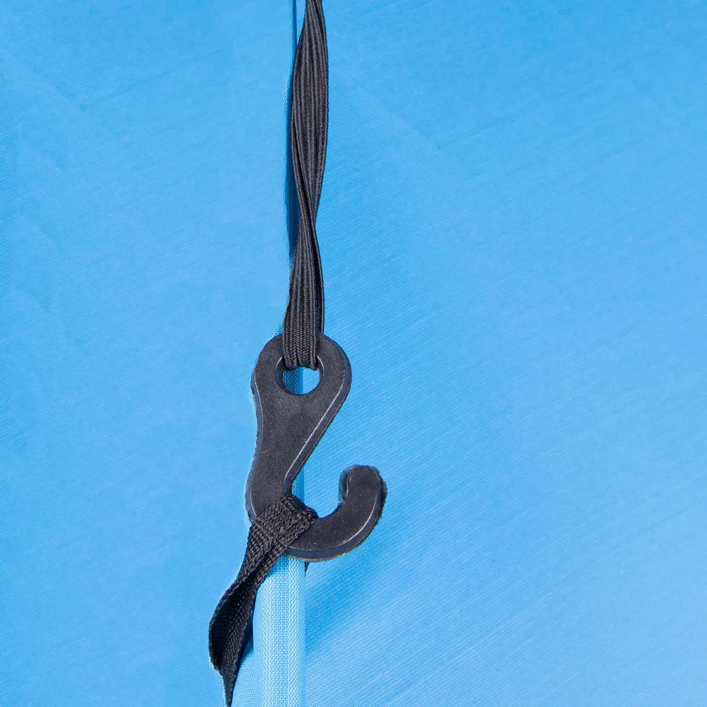 Dvojcestný zips umožňuje zatváranie a otváranie vchodu zvonku aj zvnútra, nemusíte sa teda báť, že by sa vaše deti nemohli zo stanu dostať. Hlavný vchod sa potom uzatvára na zips v dvoch krokoch: uzavretie moskytiéry a následné uzavretie vonkajšej časti stanu. Bohatá sada obsahuje kotvy na pripevnenie stanu k zemi, vďaka ktorým bude stabilná. Stan navyše môžete v zloženom stave prenášať jednoducho na ramene .