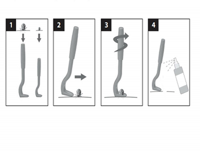 - Zapichnite háčik na strane kliešťa čo najbližšie ku koži tak, aby sa kliešť nachádzal medzi dvoma zubami.