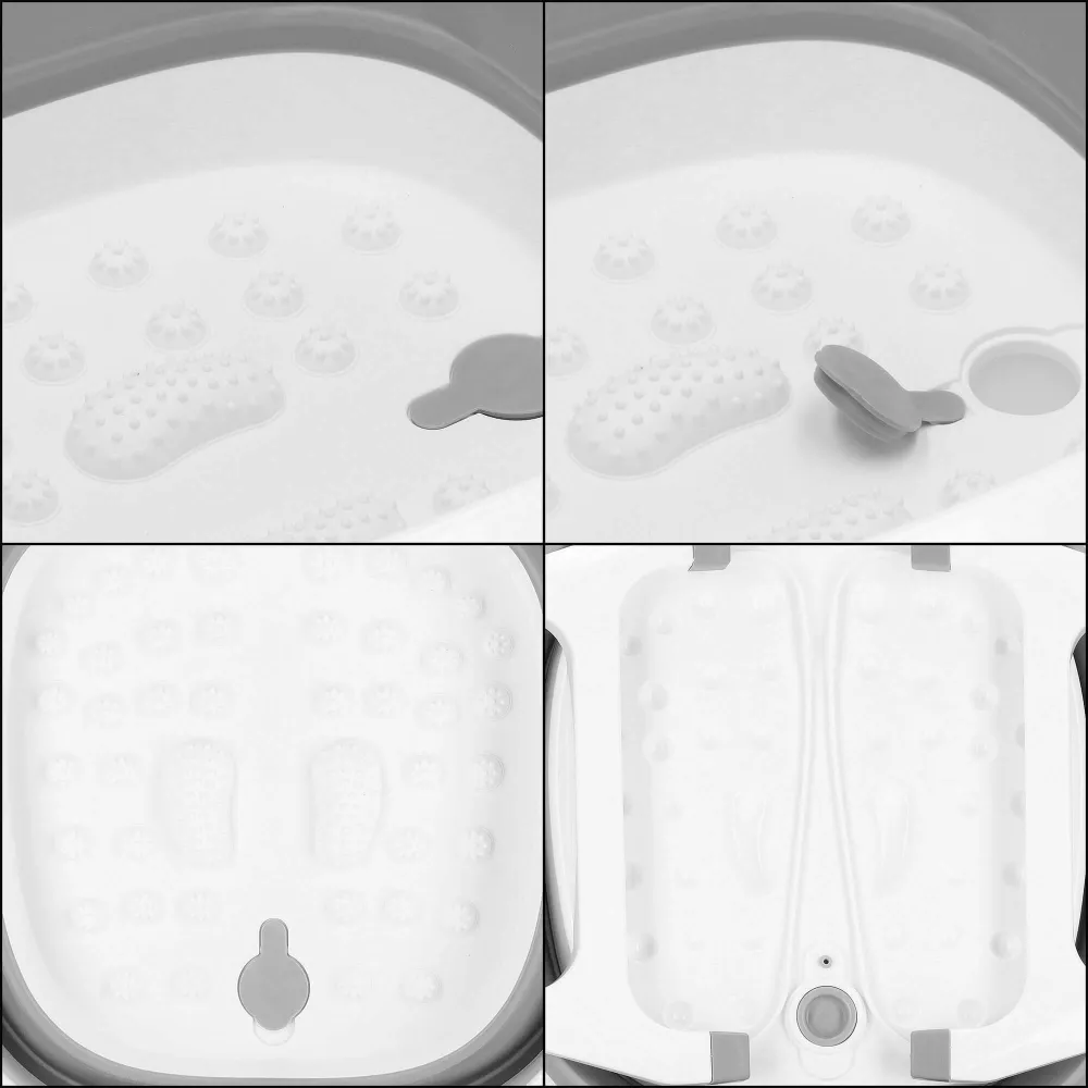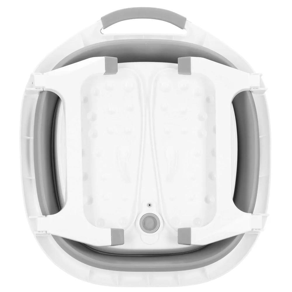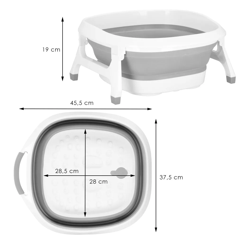 Skladacia masážna vanička na nohy. Pevný a odolný materiál, premyslený design. Výklopné, protišmykové nôžky, vypúšťacia zátka. Použitá konštrukcia umožňuje rýchle skladanie a rozkladanie. Jednoduché skladovanie, nezaberá miesto. Vhodné na každodenné použitie, na aromatický kúpeľ alebo masáž.