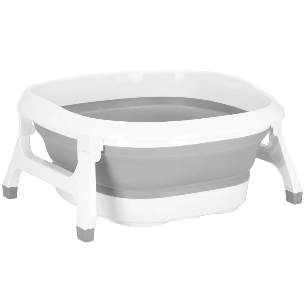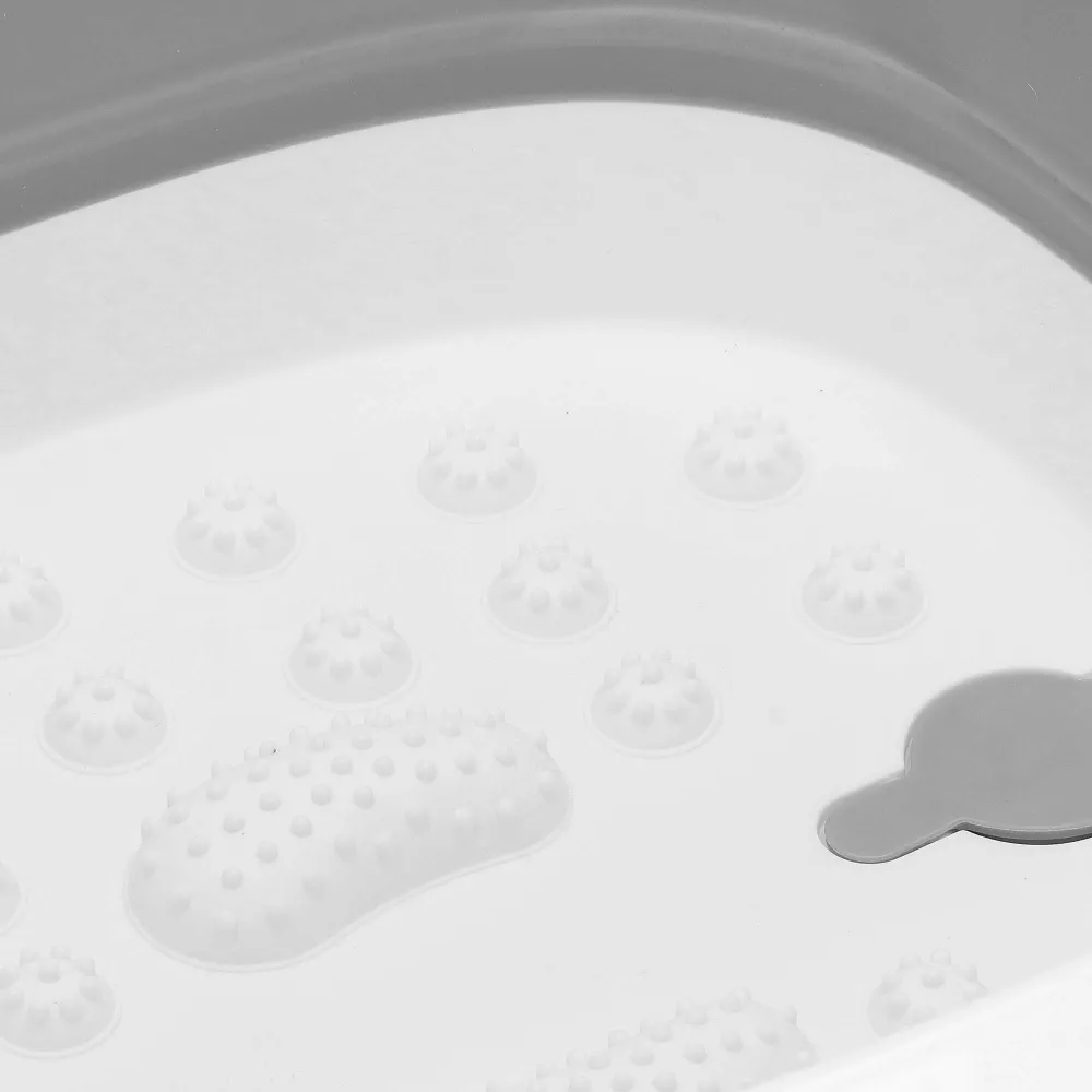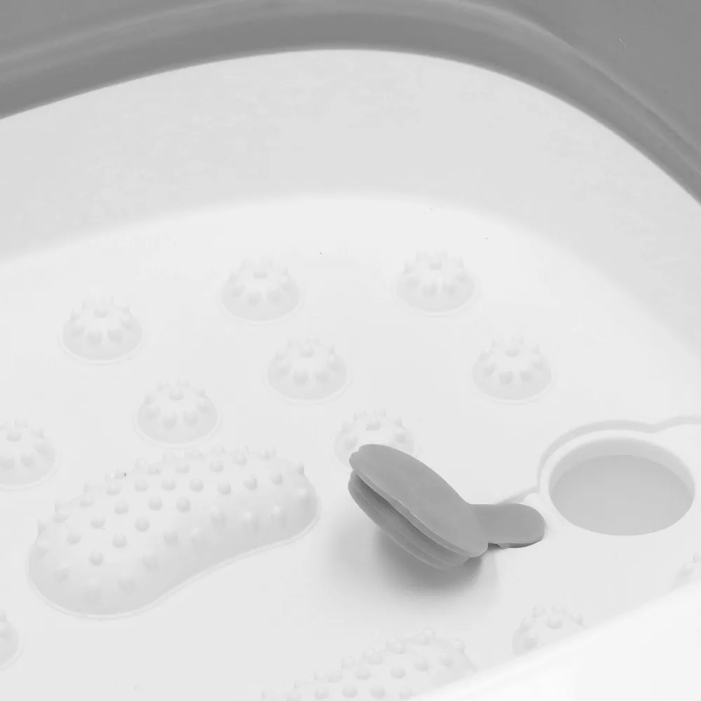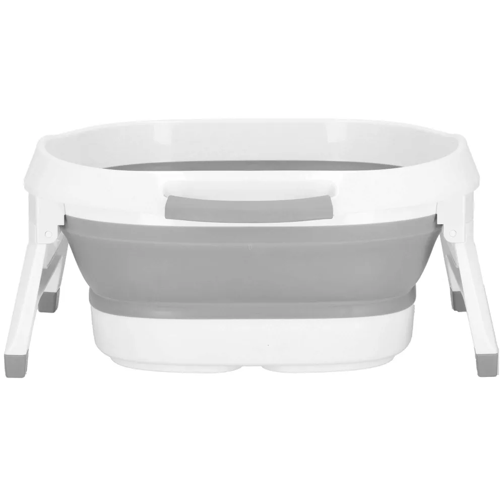 Skladacia masážna vanička na nohy. Pevný a odolný materiál, premyslený design. Výklopné, protišmykové nôžky, vypúšťacia zátka. Použitá konštrukcia umožňuje rýchle skladanie a rozkladanie. Jednoduché skladovanie, nezaberá miesto. Vhodné na každodenné použitie, na aromatický kúpeľ alebo masáž.