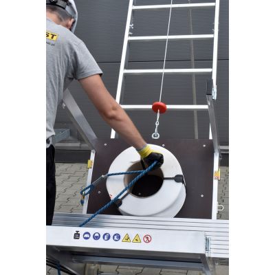 Stavebný vozík DRABEST WT-12-ST PRO je navrhnutý špeciálne na použitie s rebríkovými strešnými výťahmi, kde zaisťuje efektívny a bezpečný transport ťažkých a rozmerných materiálov. Vďaka svojej robustnej konštrukcii je pripravený zvládať aj náročné podmienky každodennej prevádzky. Sklopné bočnice uľahčujú nakladanie a vykladanie, čo výrazne zvyšuje pracovný komfort.