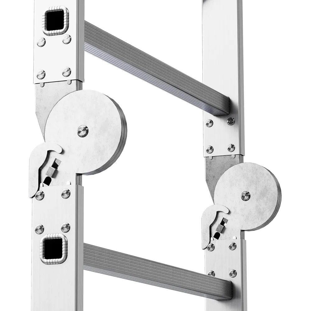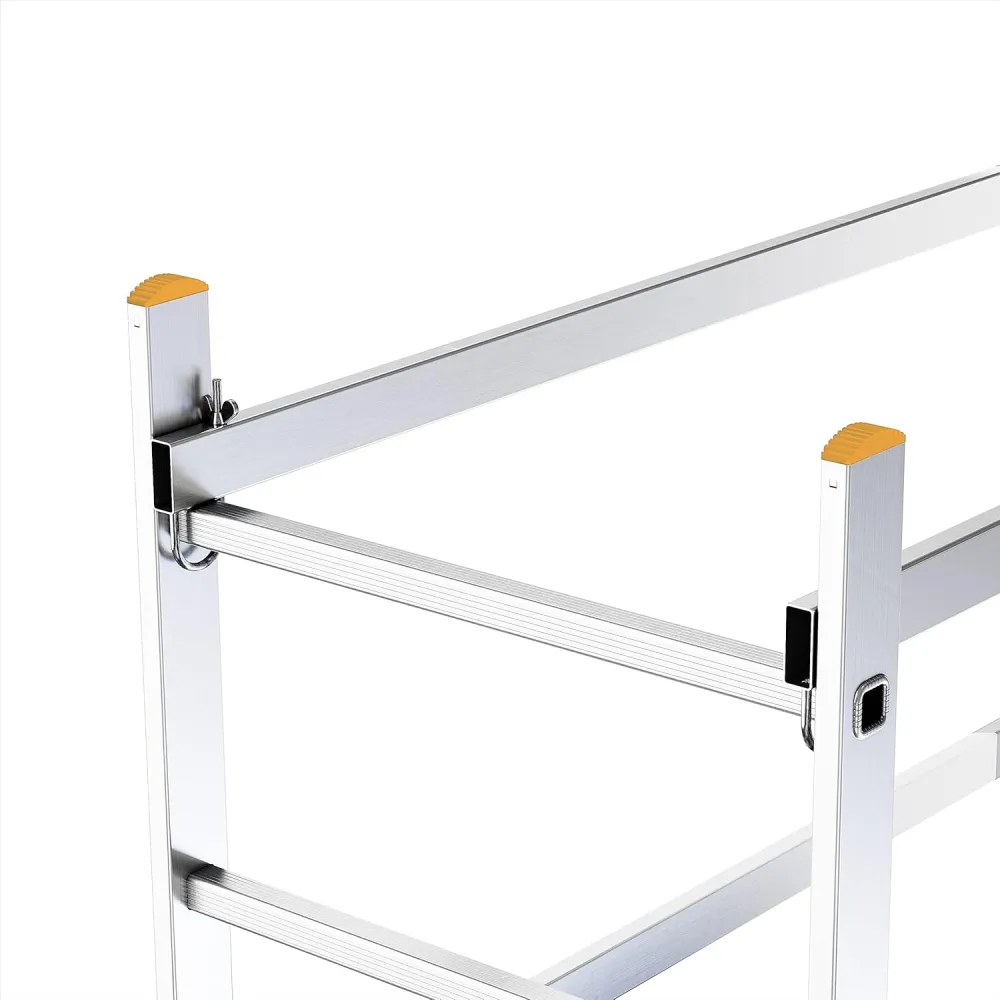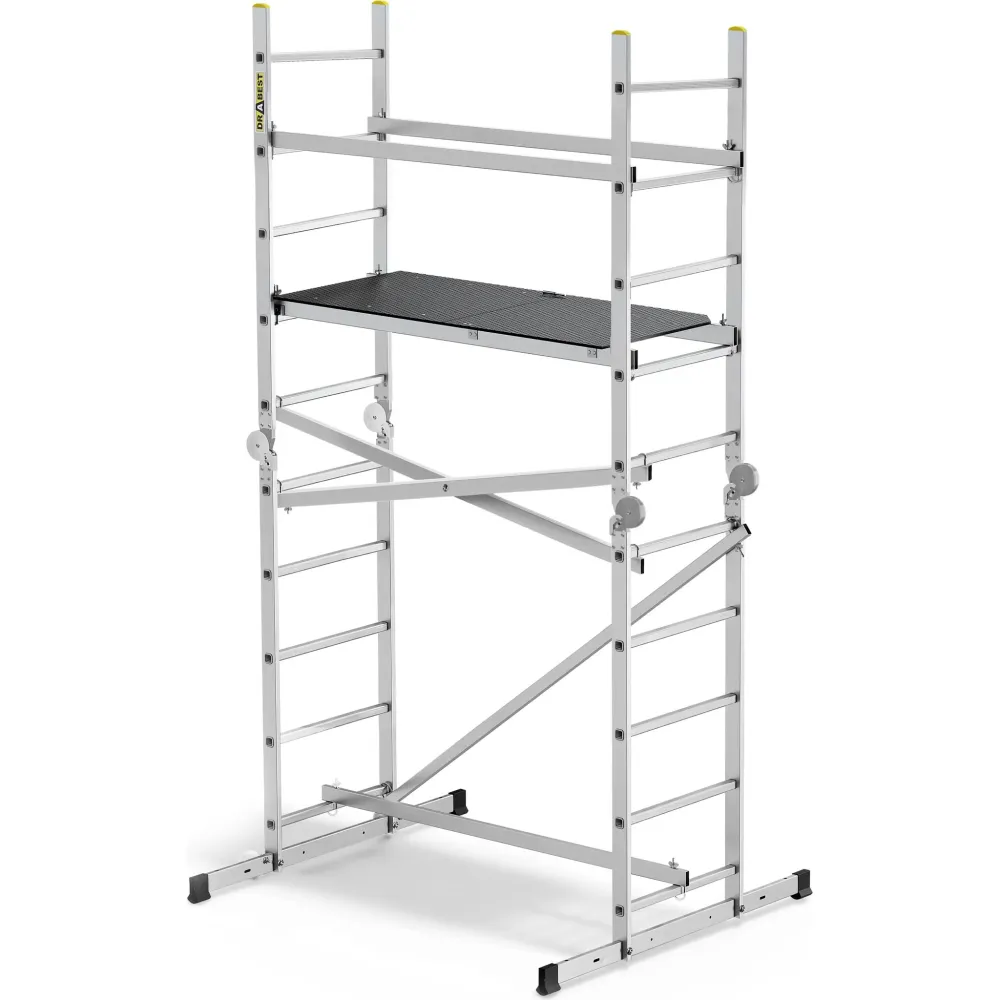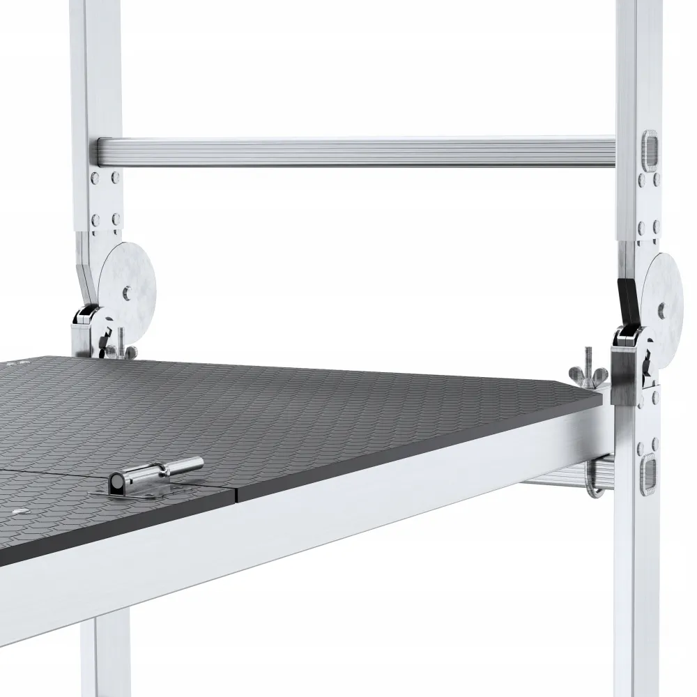 Lešenie je vyrobené z vysoko odolnej a ľahkej hliníkovej konštrukcie , ktorá zaručuje dlhú životnosť a zároveň ľahkú manipuláciu pri zostavení aj preprave. Kĺbová konštrukcia umožňuje prispôsobenie rôznym výškam, terénom aj spôsobom použitia – ako klasické lešenie, pracovná plošina alebo vysoký rebrík. Nosnosť 150 kg zaisťuje bezpečné použitie aj pri práci s náradím a materiálmi.