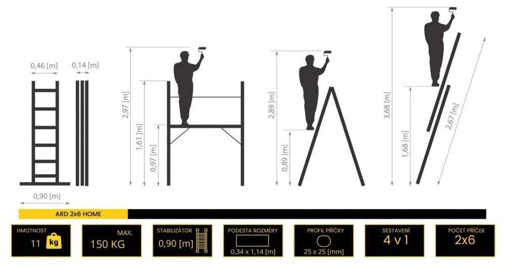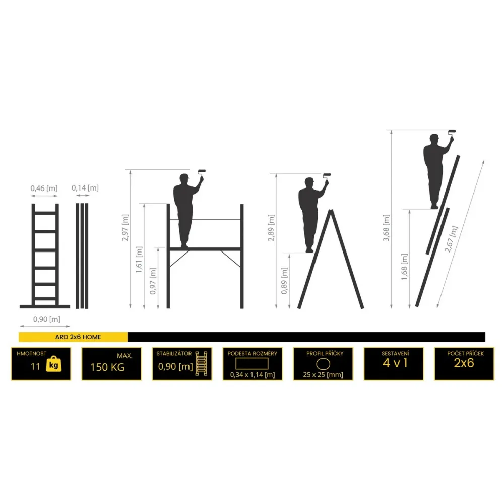 Multifunkčné lešenie 3m / 3,7m DRABEST ARD-2x6 HOME