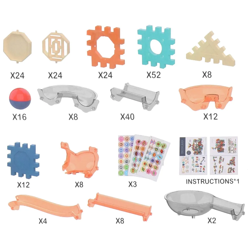 Vďaka širokej variabilite dielov môžu deti zostaviť rozmanité modely a konštrukcie podľa svojej fantázie, čo podporuje ich kreativitu a schopnosť riešiť problémy. Guľôčková dráha je navrhnutá tak, aby bola zábavná, ale zároveň vzdelávacia.
