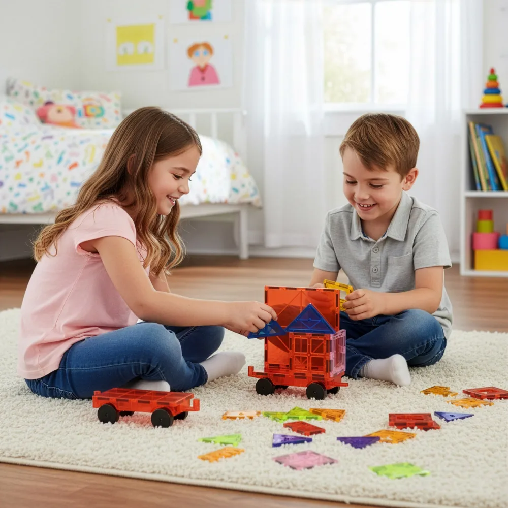 Diely sú vyrobené z bezpečných a certifikovaných materiálov , prispôsobených deťom od 3 rokov. Vďaka pevne zabudovaným magnetom je stavebnica ľahko ovládateľná a zároveň bezpečná. Hra podporuje kreativitu, sústredenie a priestorové vnímanie , a je tak ideálnou voľbou pre domáce hranie aj spoločné aktivity s rodinou.