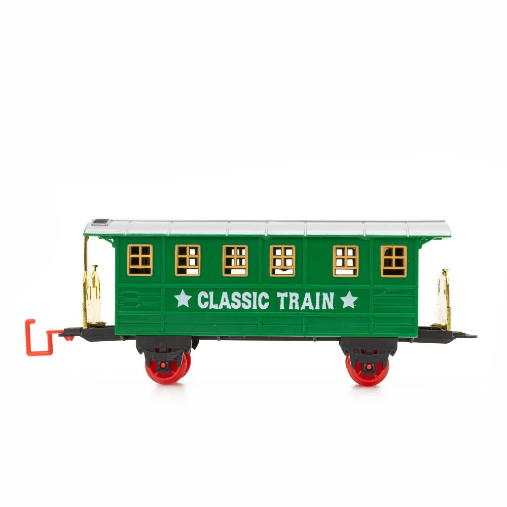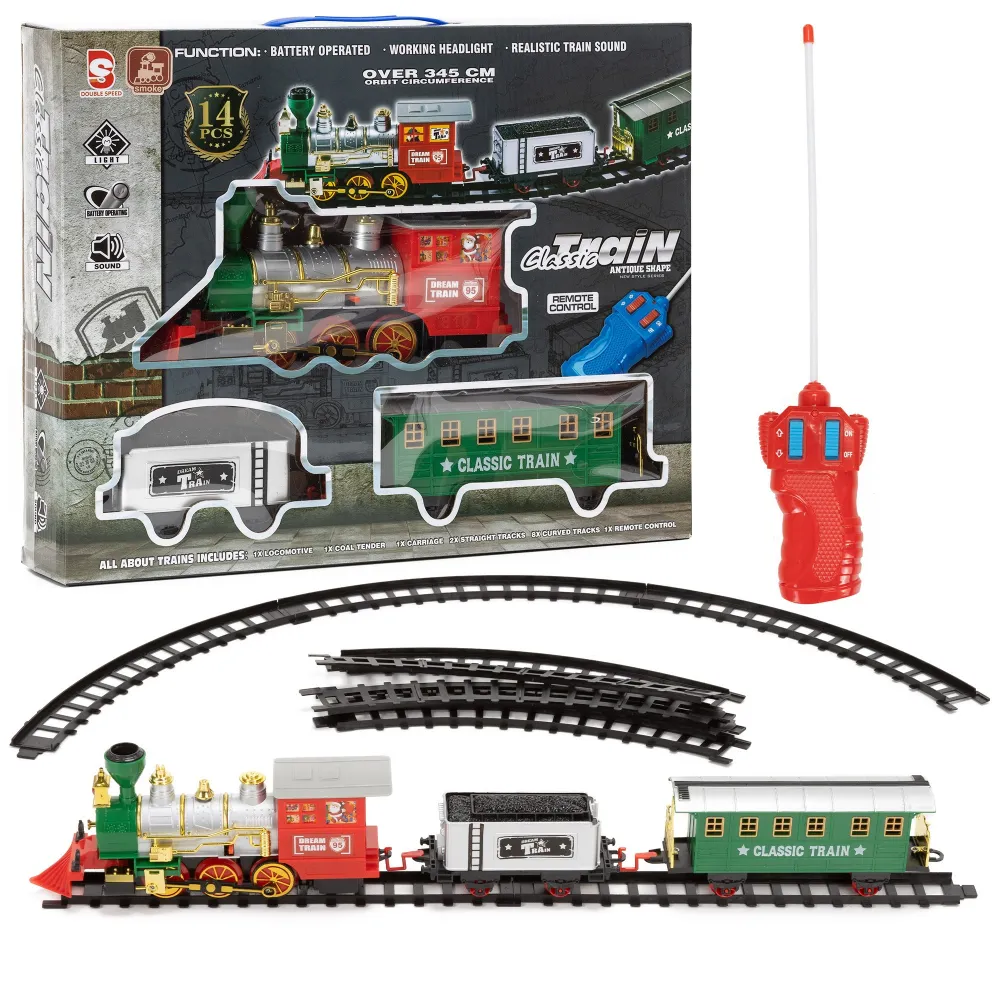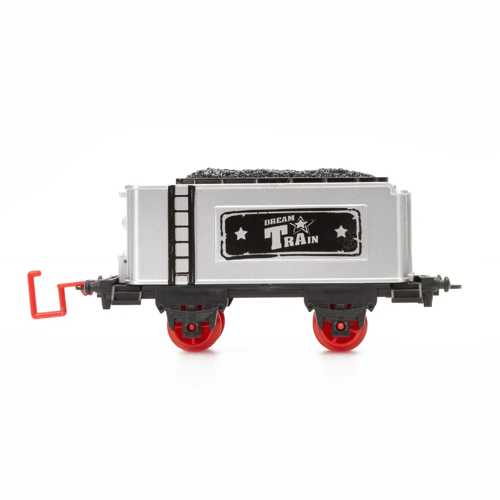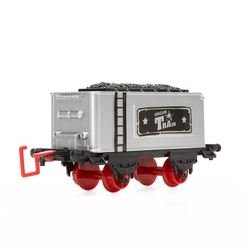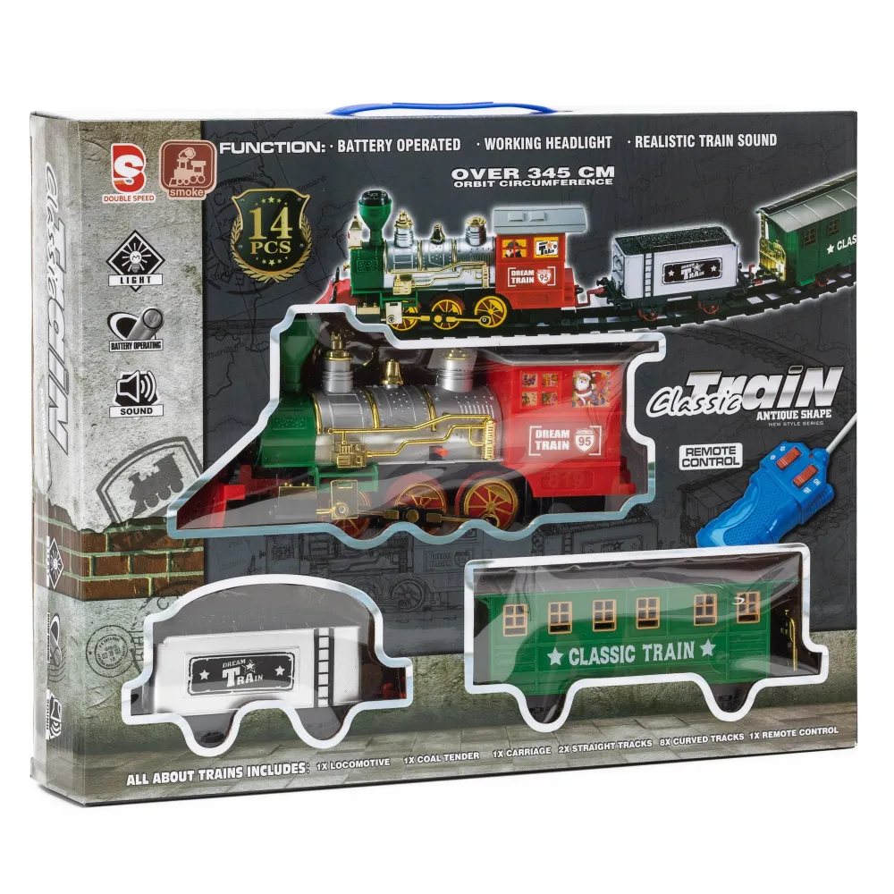 Elektrická parná lokomotíva s vagónmi prináša neuveriteľne realistický herný zážitok plný pohybu a zvukov . Diaľkové ovládanie, realistické zvuky a stúpajúca para z komína verne napodobňujú skutočný parný vlak. Vagóny sa ľahko spájajú pomocou hákov. Vyrobené z bezpečných, certifikovaných materiálov, 100% bez BPA, vhodné pre deti od 3 rokov. Ideálna hračka pre malých milovníkov železnice.