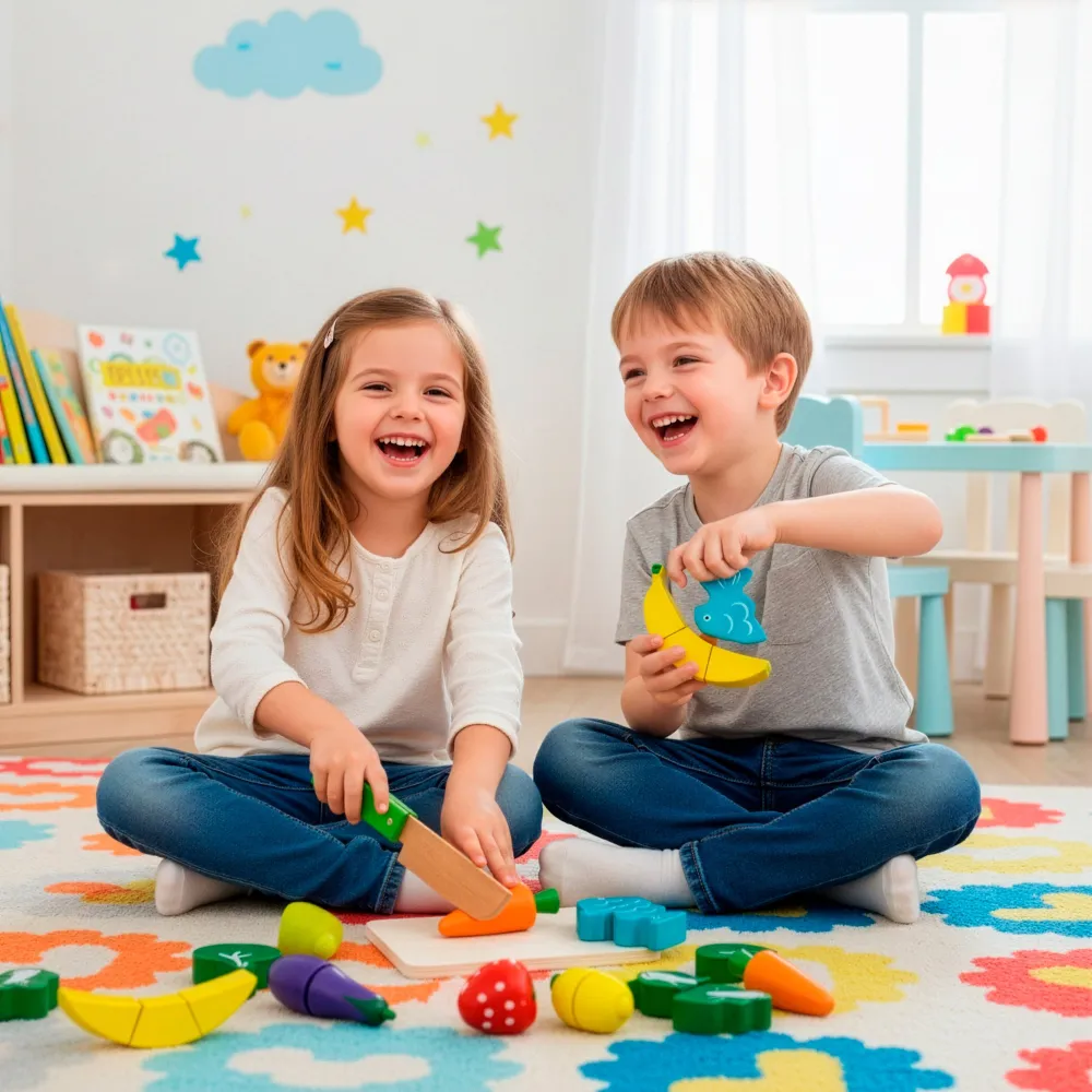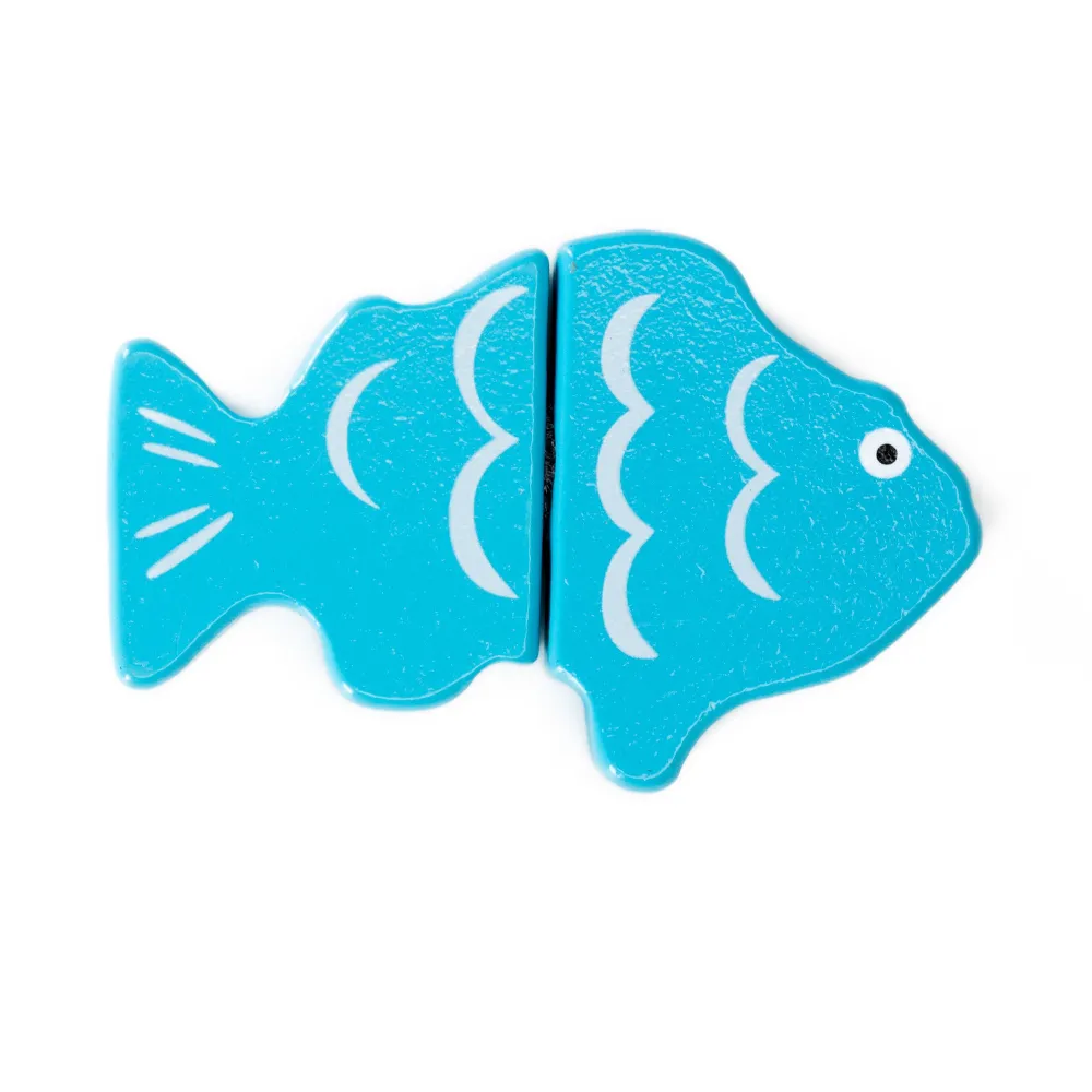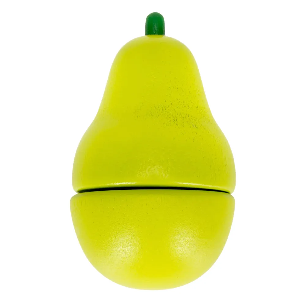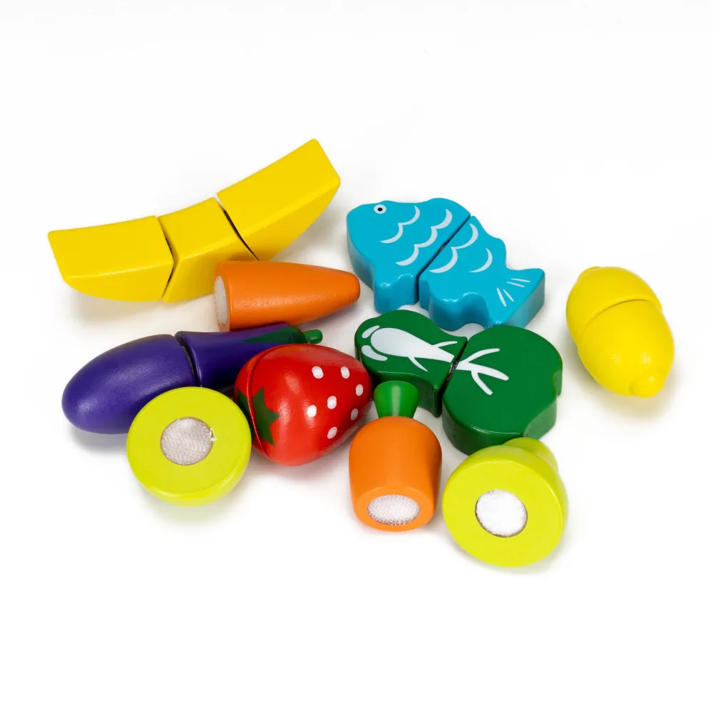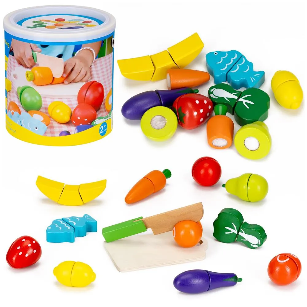 V sade deti nájdu napríklad banán, jahodu, rybu, mrkvu, paradajku, baklažán, hrušku či brokolicu , ktoré môžu krájať pomocou dreveného noža a dosky. Hra rozvíja jemnú motoriku, koordináciu rúk a očí aj predstavivosť . Celá sada je uložená v praktickej krabičke s rukoväťou pre ľahké ukladanie a prenášanie. Vhodné pre deti od 3 rokov.