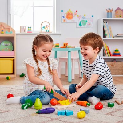 Farebná drevená súprava na hravú prípravu jedla podporuje učenie formou zábavy a rozvoj detských zručností. Ovocie a zelenina spojené suchým zipsom sa dajú ľahko „krájať“ a znovu spájať, pričom zvuk rozopnutia suchého zipsu umocňuje realistický zážitok z hry. Vyrobená z ľahko brúseného, bezpečného dreva, balená v praktickej krabičke s rukoväťou pre ľahké skladovanie. Vhodné pre deti od 3 rokov.