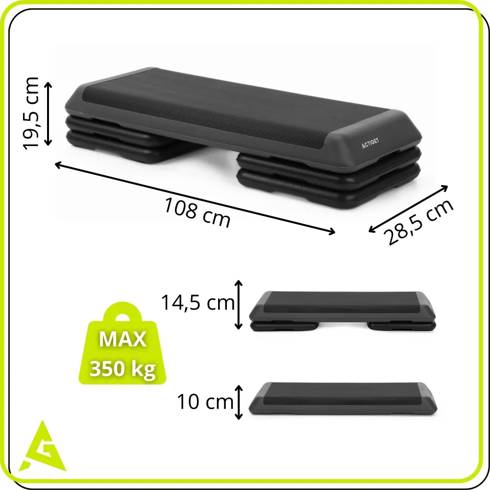Stepper 3 stupne ACTIGET ACT0121 je ideálnou pomôckou pre kardio cvičenia, posilnenie nôh i zlepšenie kondície . Ponúka nastaviteľnú výšku v 3 stupňoch - 10, 14,5 a 19,5 cm , takže si ľahko prispôsobíte intenzitu tréningu podľa svojich schopností. Vďaka veľkej ploche umožňuje bezpečné a pohodlné vykonávanie cvikov .