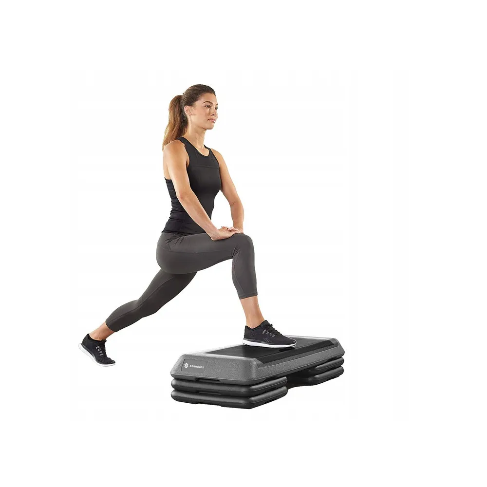 Fitnes schody s nastaviteľnou výškou stupňa 10-15-20 cm. Protišmykový povrch nášľapu, nekĺzavé gumové podložky. Perfektný na tvarovanie a posilňovanie svalov dolných končatín, brucha a zlepšenie kardiovaskulárneho systému aeróbnym cvičením.