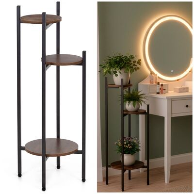 Elegantný tmavo hnedý stojan v kombinácii kovu a drevenej odkladacej plochy ponúkne štýlové miesto pre tri kvetináče. Vďaka kompaktným rozmerom skvele zapadne do obývačky, predsiene aj spálne. Nastaviteľné nožičky umožnia vyrovnanie na akomkoľvek povrchu a pevná konštrukcia zaistí stabilitu. Jednoduchá montáž uľahčí zostavenie a moderný dizajn dodá rastlinám atraktívnu prezentáciu.