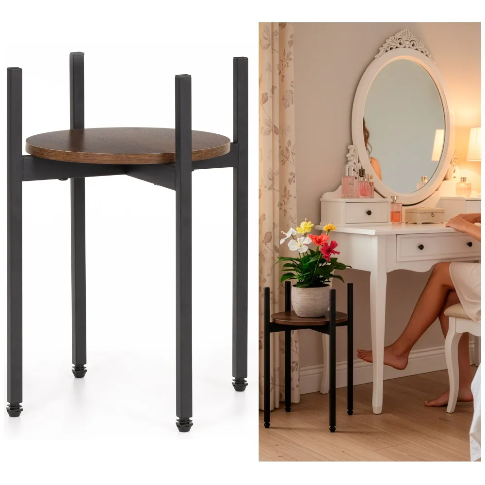 Elegantný tmavo hnedý stojan s kovovou konštrukciou a drevenou odkladacou plochou je ideálny na vystavenie jednej výraznej rastliny. Stabilné prevedenie s nastaviteľnými nožičkami zaistí vyrovnanie aj na nerovnom povrchu. Vďaka kompaktnej veľkosti sa skvele hodí do obývacej izby, spálne či predsiene, kde dodá priestoru štýlový akcent. Jednoduchá montáž umožní rýchle a bezproblémové zostavenie.