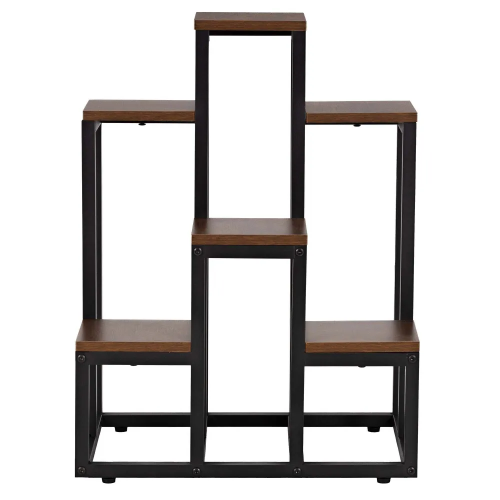 Kovový stojan na kvety 67,5 cm SPRINGOS GA0220 tmavo hnedý predstavuje harmonické spojenie elegantného dizajnu , prírodného vzhľadu dreva a pevnej kovovej konštrukcie . Viacúrovňové riešenie umožňuje vytvoriť pôsobivú kompozíciu rastlín i dekorácií, ktorá prirodzene zútulní každý priestor a zároveň zachová vzdušnosť interiéru.