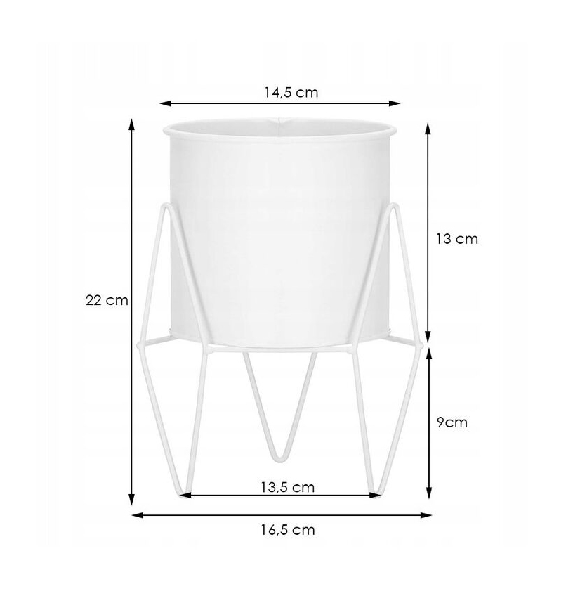 Štýlový kovový stojan na kvety s vyberateľným kvetináčom. Detailné spracovanie, elegantný design. Stabilná a pevná konštrukcia, dlhá životnosť. Rozmery 19x15x15 cm. Praktický doplnok, ktorý je vhodný do akéhokoľvek interiéru a exteriéru.