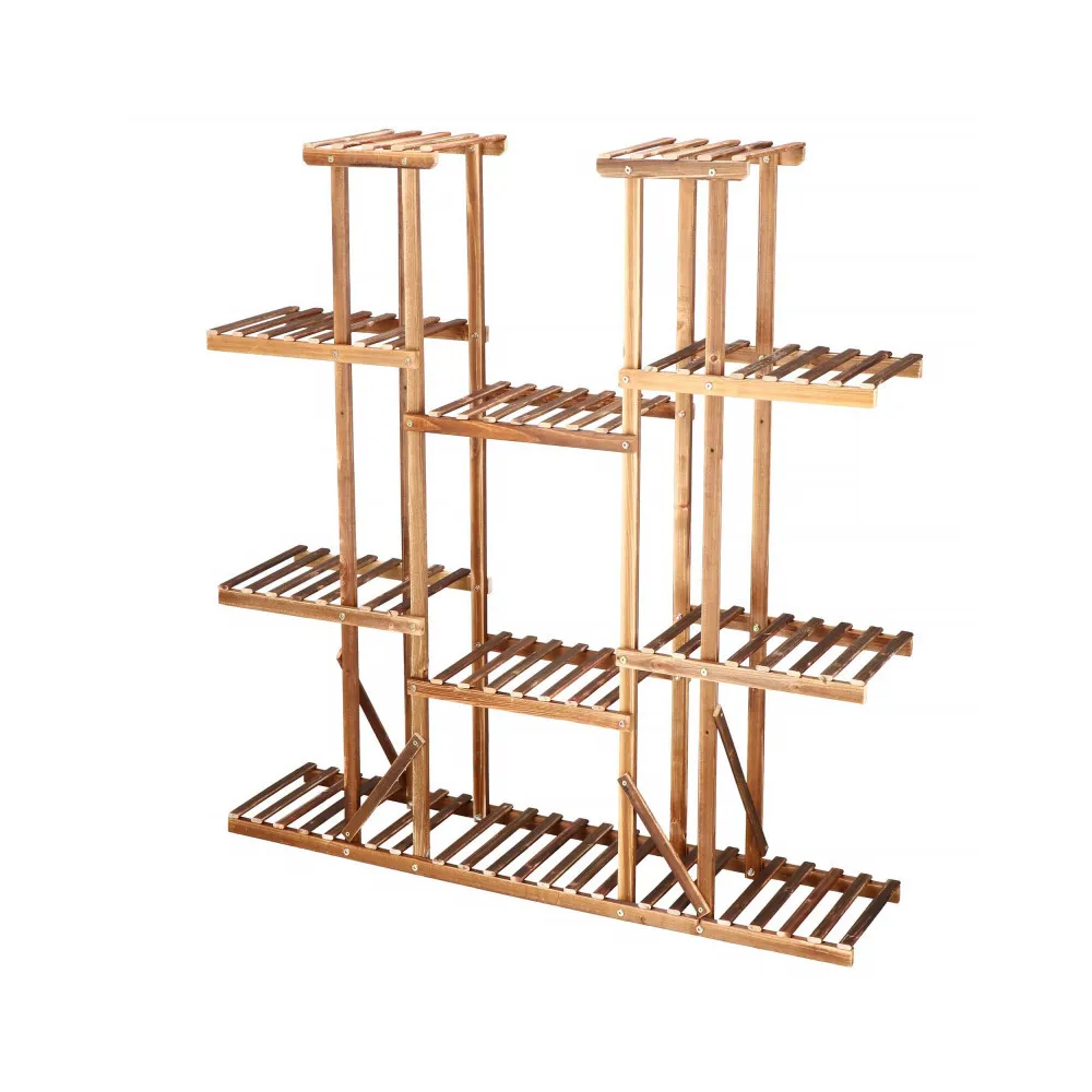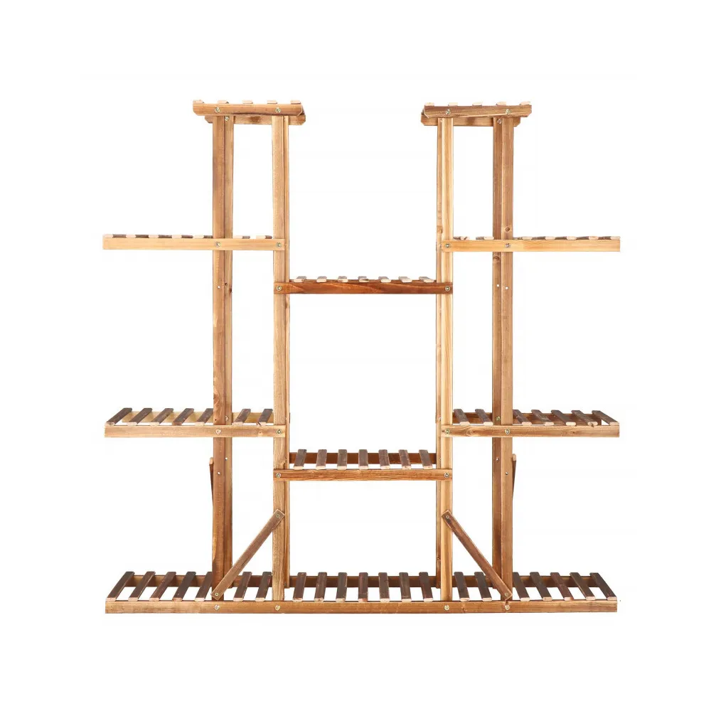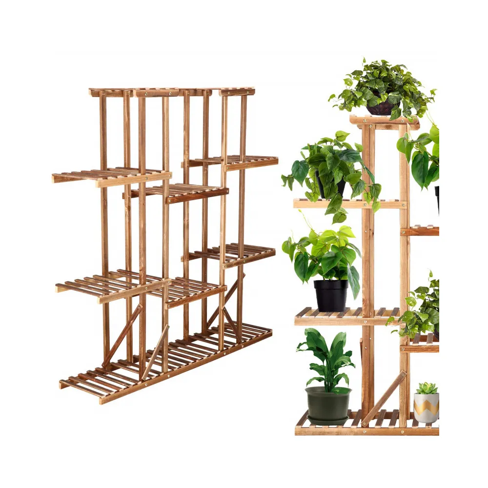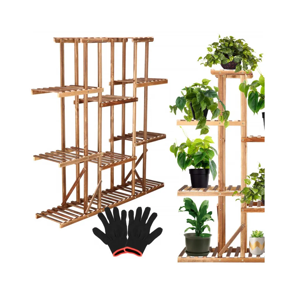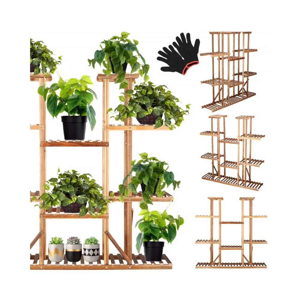 Viacúrovňový stojan až na 12 kvetov s drevenými poličkami. Kvalitné spracovanie, prírodný drevený materiál. Jednoduchá montáž, ľahký dizajn, univerzálne farby. Moderný štýl, vhodný do akéhokoľvek interiéru alebo exteriéru. 6 rôznych poschodí. Vytvorte si svoju vlastnú kompozíciu kvetov.