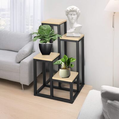 Regál na kvety je ideálnym riešením pre malé priestory - ponúkne 4 miesta pre kvetináče, takže môžete pestovať viac rastlín pohromade. Kovový stojan na kvety vyniká ľahkou konštrukciou, jednoduchým zostavením a univerzálnymi farbami. Čierny rám s matnou úpravou a drevené police pôsobia elegantne a zároveň odolne.