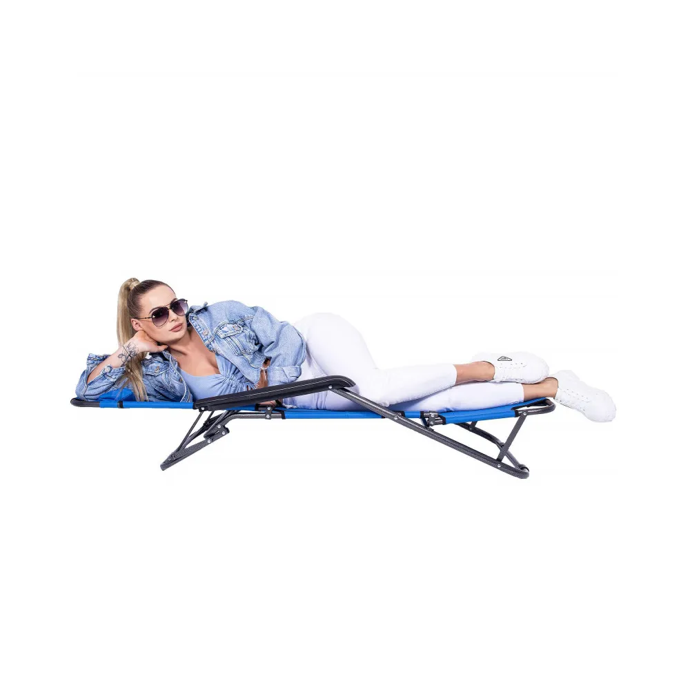 Polohovateľné rozkladacie kreslo s funkciou lehátka. S opierkou na nohy, pohodlnými podrúčkami a podhlavníkom pre váš dokonalý relax. Jednoducho zložiteľné s minimálnymi nárokmi na skladovacie miesto. Nosnosť 120 kg.