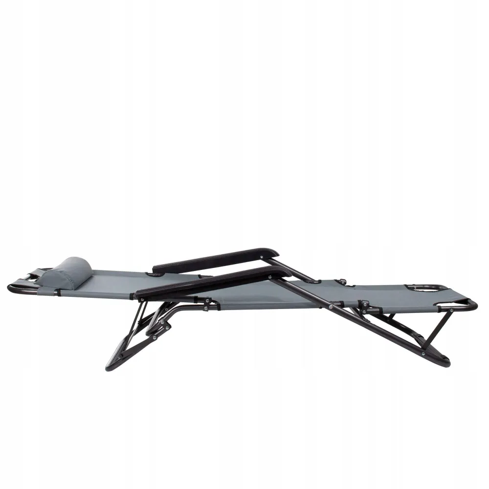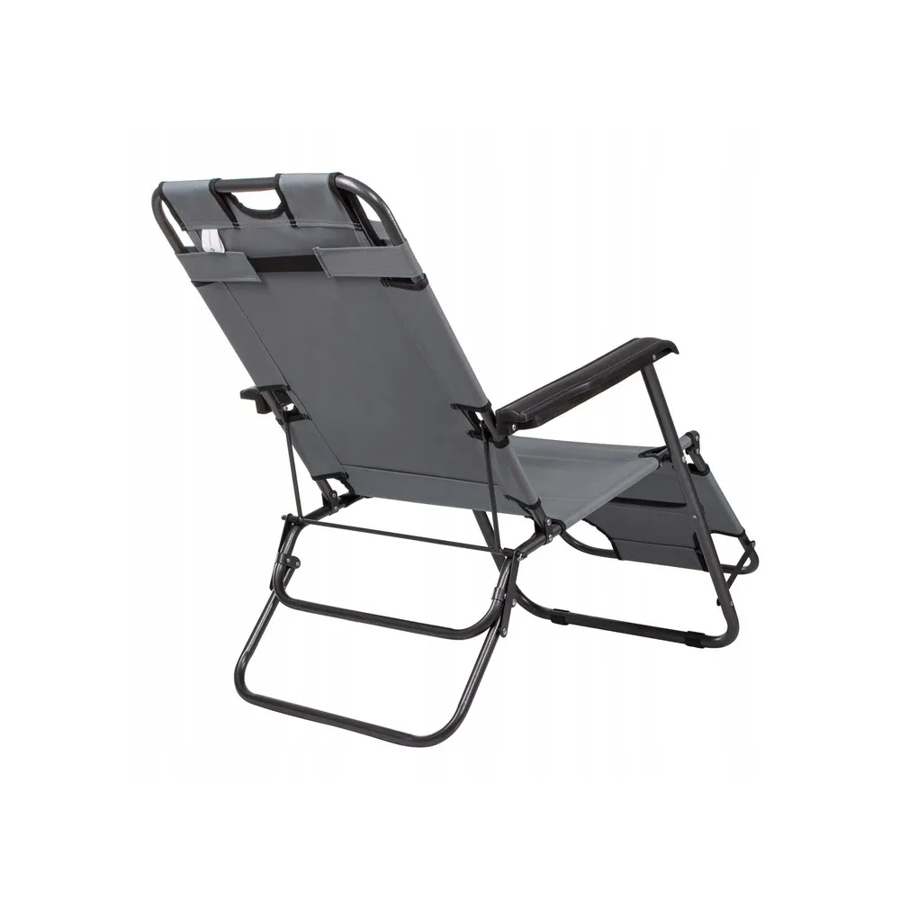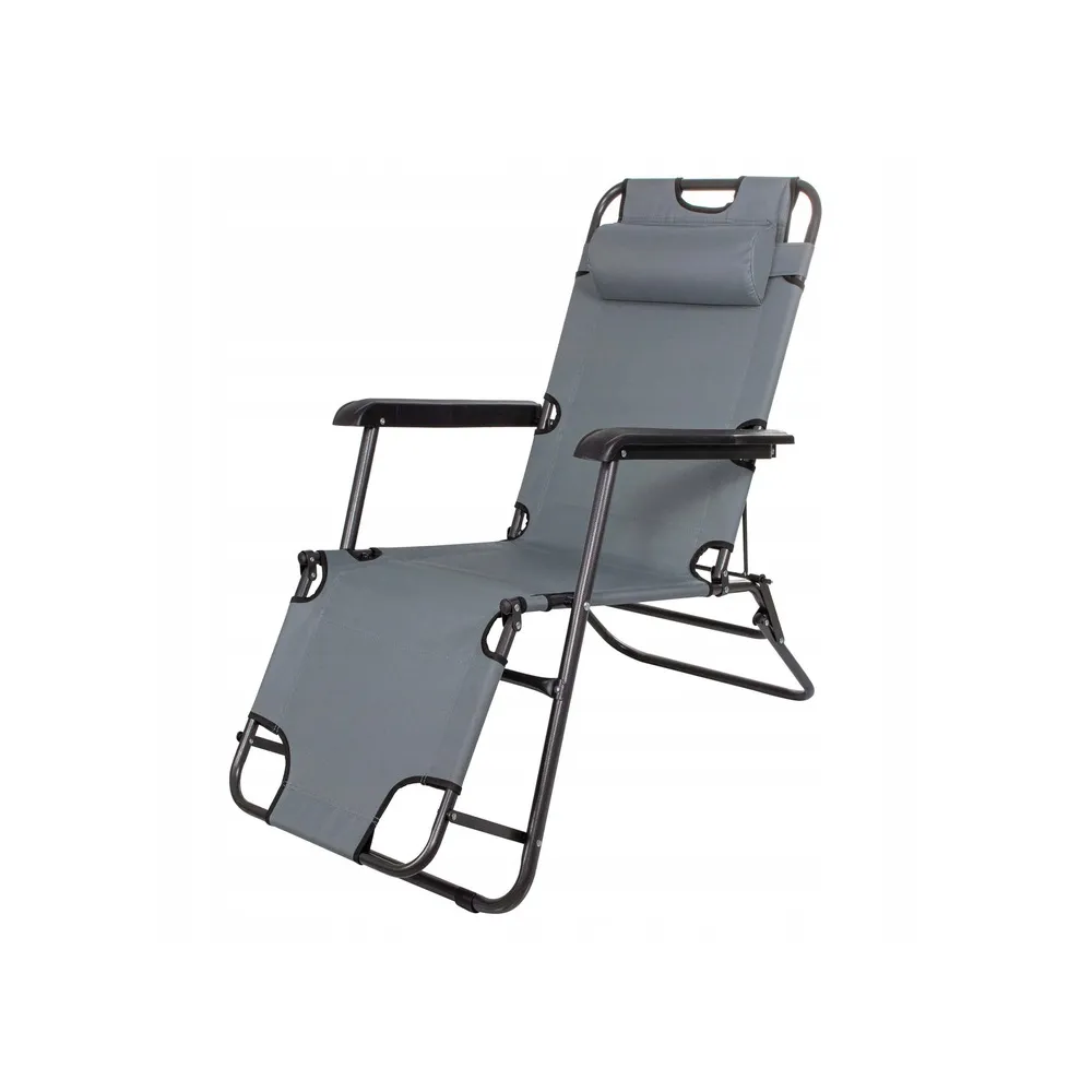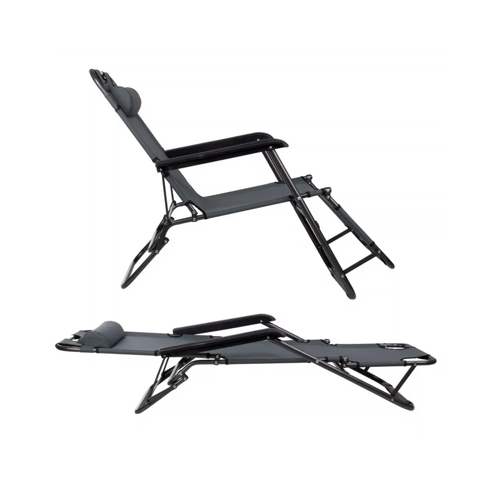 Polohovateľné rozkladacie kreslo s funkciou lehátka. S opierkou na nohy, pohodlnými podrúčkami a podhlavníkom pre váš dokonalý relax. Jednoducho zložiteľné s minimálnymi nárokmi na skladovacie miesto. Nosnosť 120 kg.