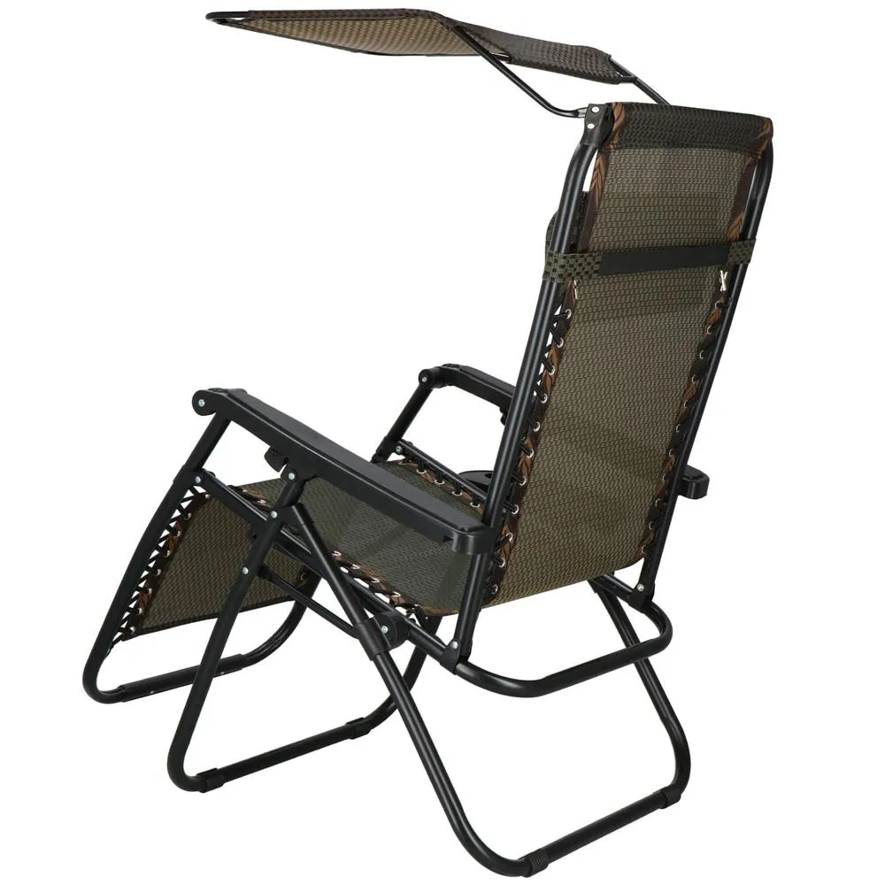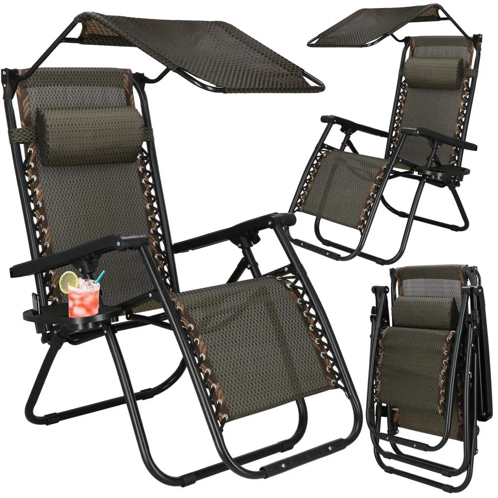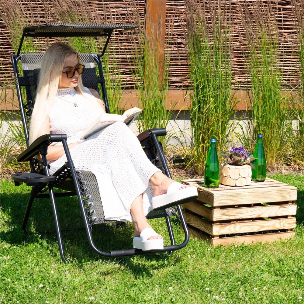 Záhradné polohovacie kreslo so strieškou SPRINGOS ZERO GRAVITY čierno-hnedé