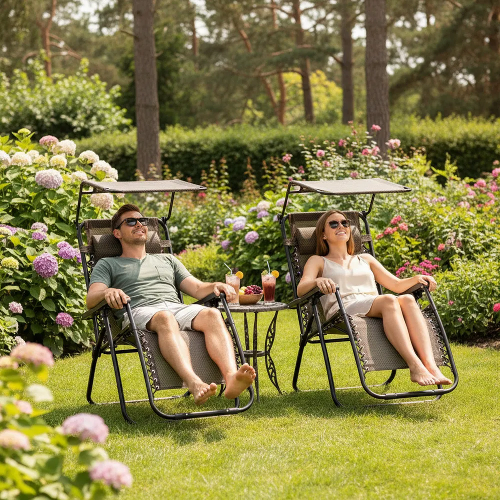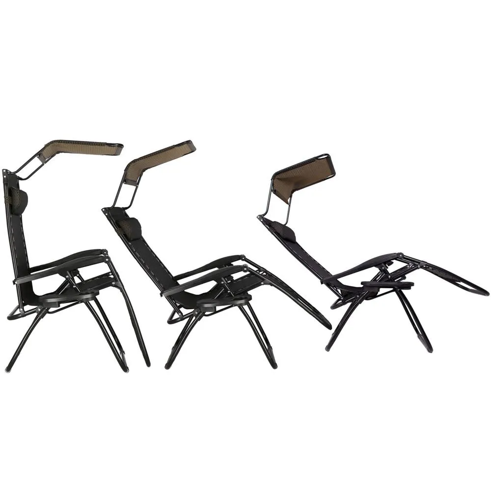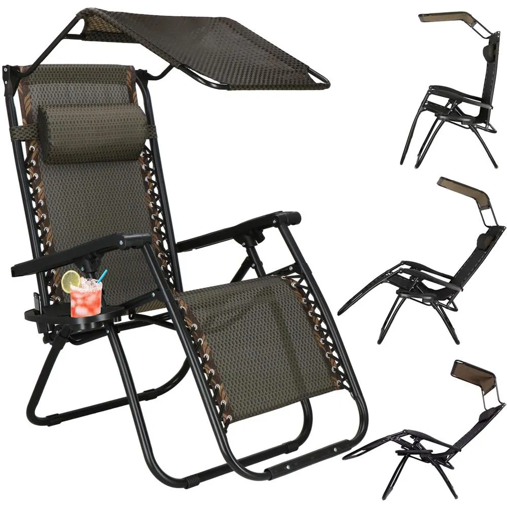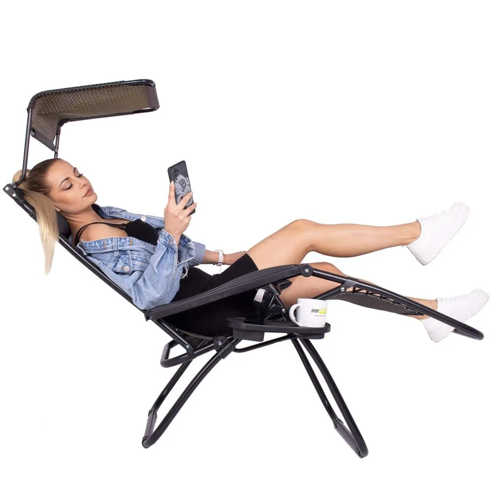 Záhradné polohovacie kreslo so strieškou SPRINGOS ZERO GRAVITY čierno-hnedé