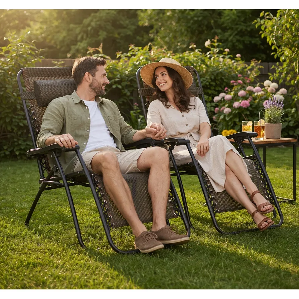 Záhradné kreslo SPRINGOS ZERO GRAVITY ponúka vysoký komfort pohodlia a atraktívne doplnky , ktoré vám spríjemnia chvíle odpočinku. Kreslo je možné plynulo polohovať s ohľadom na vaše aktuálne potreby. Sklon sedadla si ľahko nastavíte ako na čítanie knižky, tak na pohodlné opaľovanie. Zvolená poloha je bezpečne fixovaná pákovým mechanizmom .
