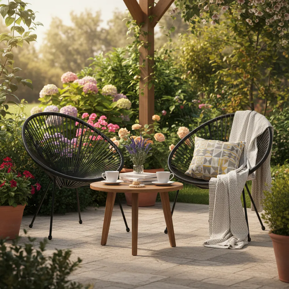 - Materiál: PE ratan, kov