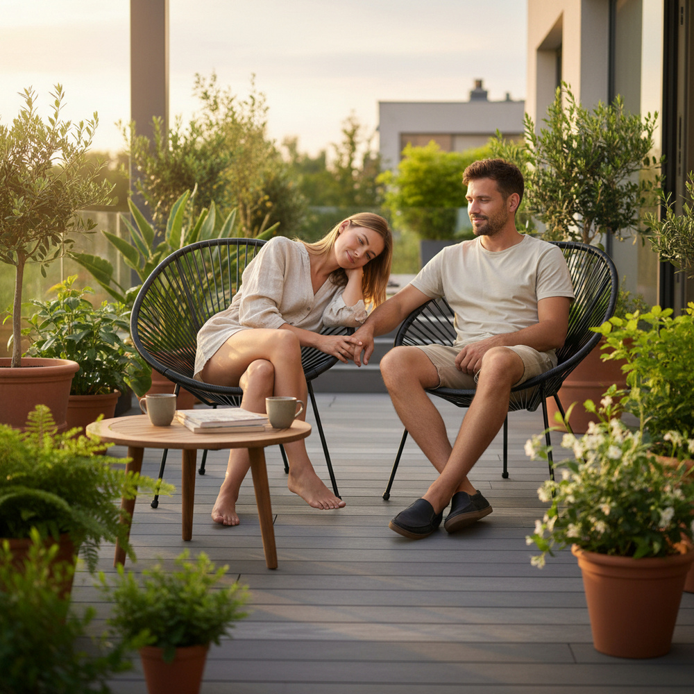Kreslo je vyrobené z materiálu, ktorý neabsorbuje vlhkosť a nezahrieva sa na slnku , čo zaisťuje pohodlné používanie aj počas horúcich dní. Pevná konštrukcia a jednoduchá údržba z neho robí praktickú voľbu pre každodenné použitie v exteriéri.