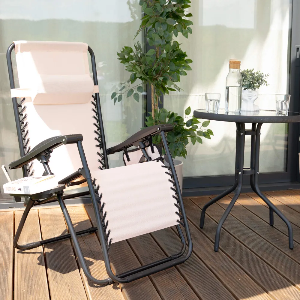 Záhradné polohovacie kreslo SPRINGOS ZERO GRAVITY krémové