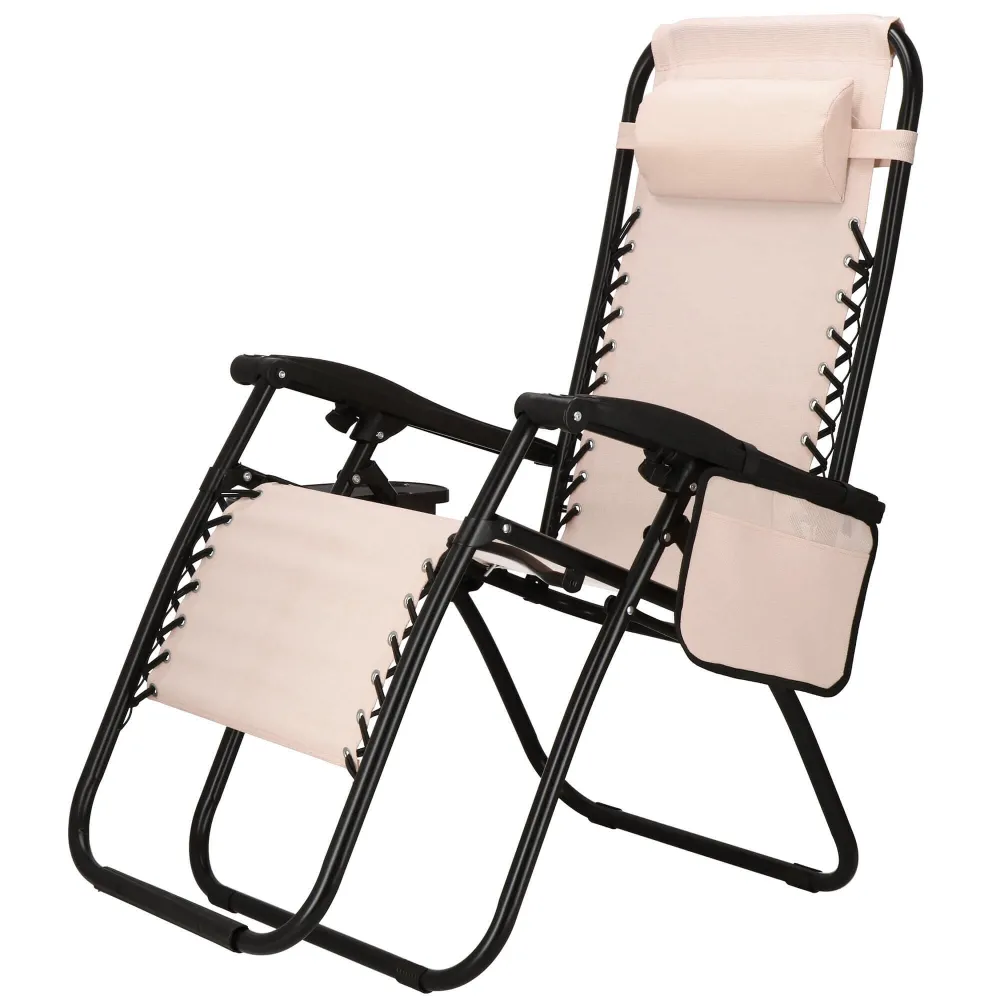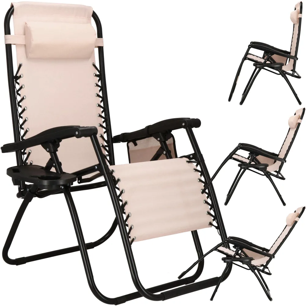Záhradné polohovacie kreslo SPRINGOS ZERO GRAVITY krémové
