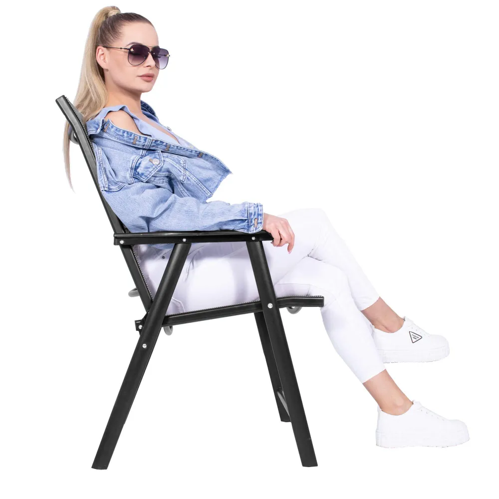 Kreslo disponuje skladacou konštrukciou , ktorá umožňuje ľahké uskladnenie a prepravu . Stabilná a pevná konštrukcia zaisťuje bezpečné používanie pri každodennom posedení. Moderný čierny design sa hodí na terasu, balkón aj záhradu.