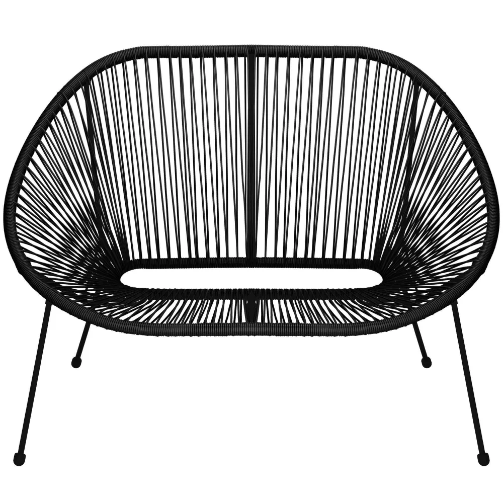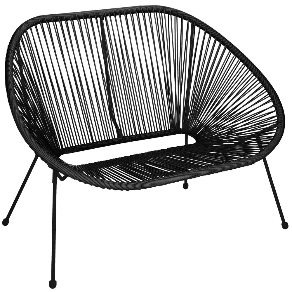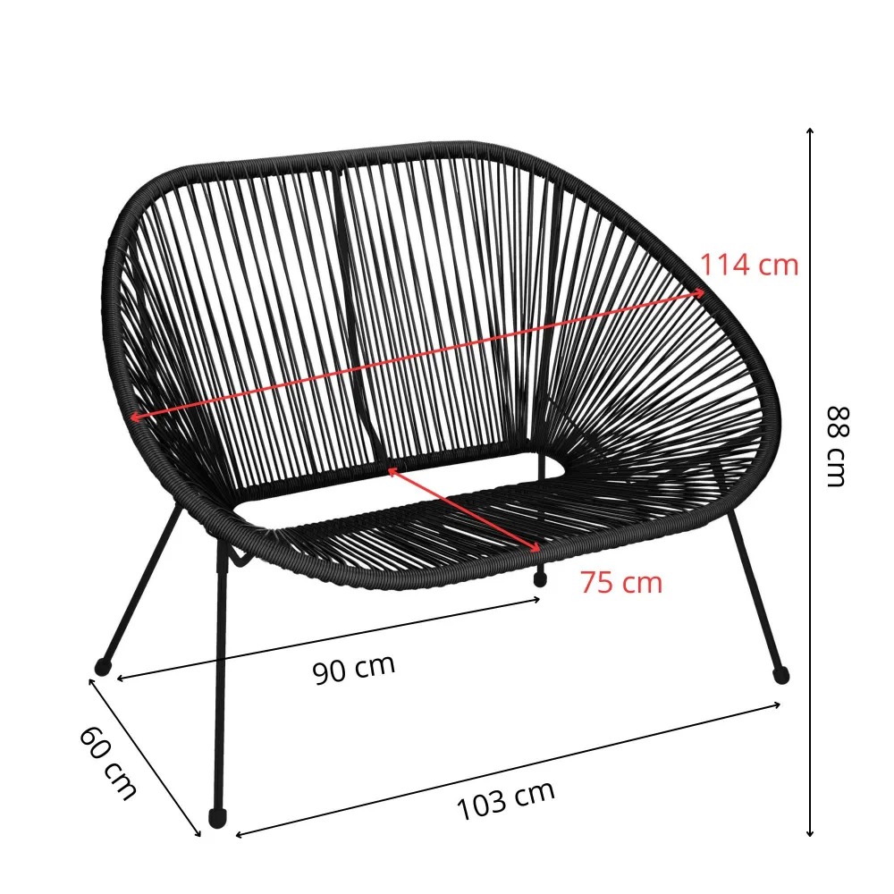 Ratanová záhradná pohovka SPRINGOS LOA GF0088 čierna je elegantné riešenie pre pohodlné vonkajšie posedenie , ktoré zaujme svojim moderným a vzdušným dizajnom . Ponúka dostatok priestoru pre dve osoby , takže je ideálny pre relaxáciu na terase, balkóne alebo záhrade.