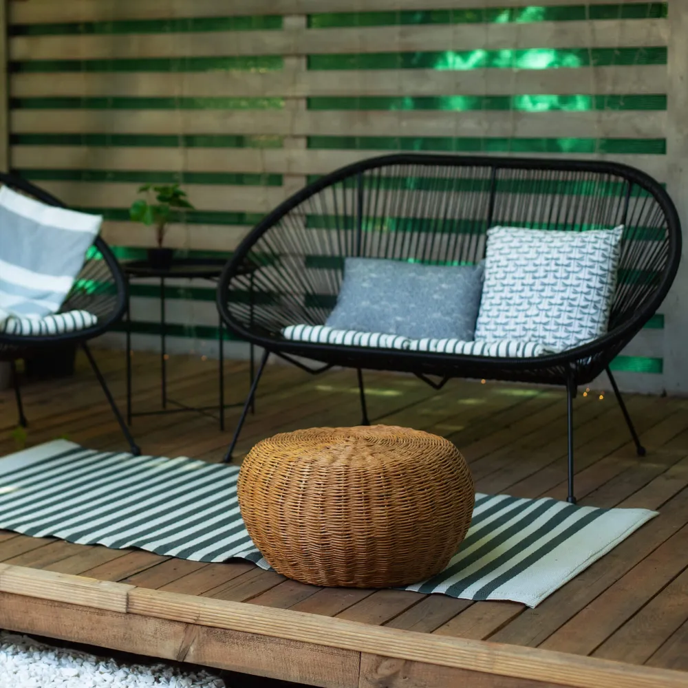 Ratanová záhradná pohovka pre pohodlné posedenie vonku. Slúži na relaxáciu na terase, balkóne alebo záhrade. Ponúka dostatok priestoru pre dve osoby a štýlový doplnok exteriéru. Ideálne pre odpočinok aj spoločné chvíle.