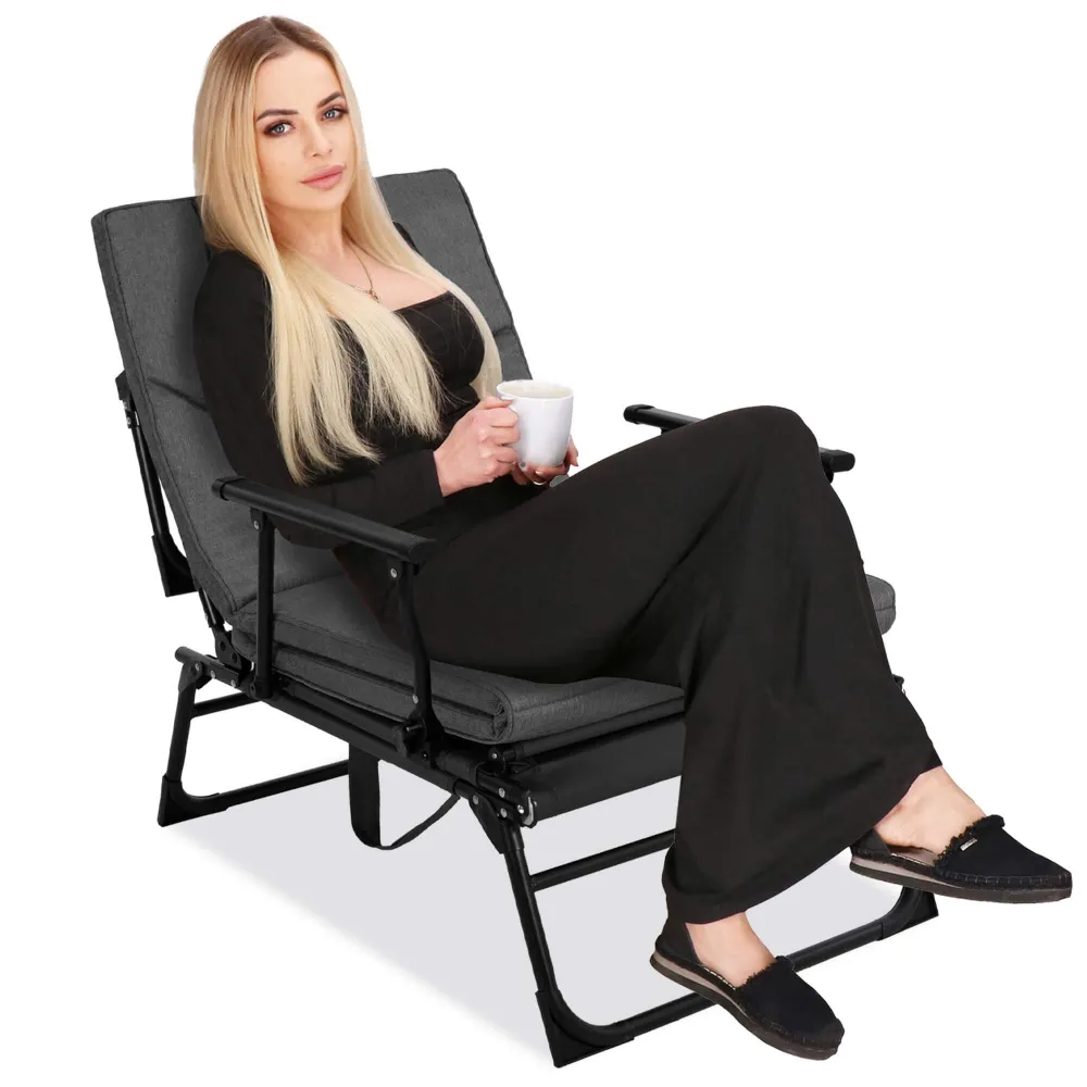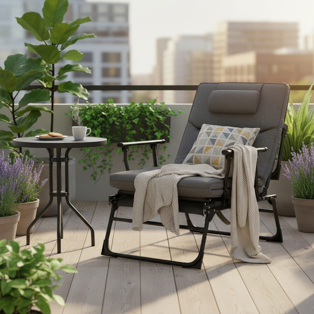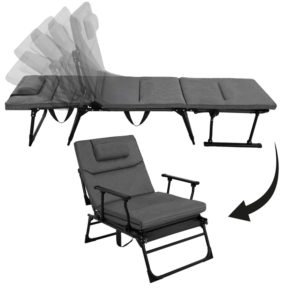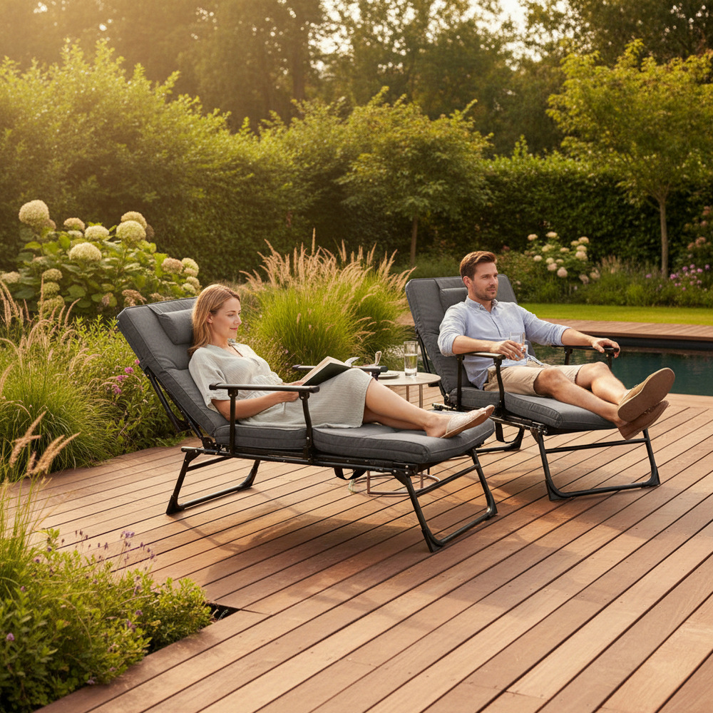 Veľmi komfortné záhradné kreslo s funkciou lehátka a 5 nastaviteľnými polohami operadla zaistí maximálne pohodlie pri odpočinku. Silný podsedák, opierka hlavy a zaoblené rukoväte poskytujú vysoký komfort sedenia aj ležania. Stabilná kovová konštrukcia, nosnosť 120 kg, ľahko zložiteľné a dvojité držadlo na prenášanie robia z tohto kresla ideálneho spoločníka na záhradu, balkón, terasu, ale aj cestovanie.