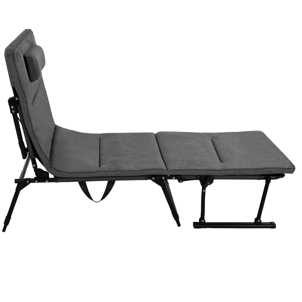 Veľmi komfortné záhradné kreslo s funkciou lehátka a 5 nastaviteľnými polohami operadla zaistí maximálne pohodlie pri odpočinku. Silný podsedák, opierka hlavy a zaoblené rukoväte poskytujú vysoký komfort sedenia aj ležania. Stabilná kovová konštrukcia, nosnosť 120 kg, ľahko zložiteľné a dvojité držadlo na prenášanie robia z tohto kresla ideálneho spoločníka na záhradu, balkón, terasu, ale aj cestovanie.
