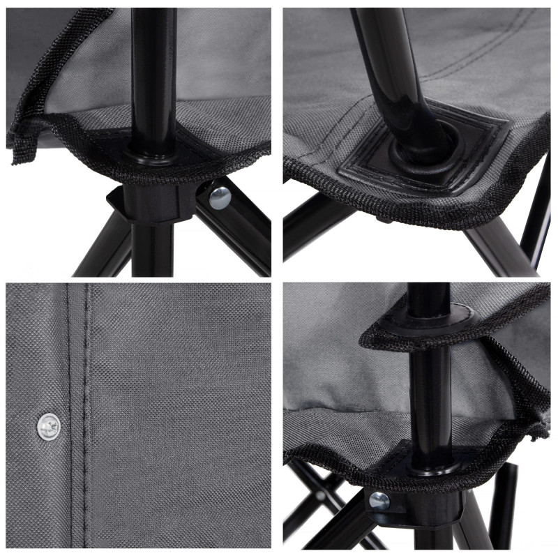Priedušný, vodeodolný materiál kempingovej stoličky je rozhodne jej prednosťou. Navyše je vybavená bezpečnostnými prvkami na konštrukciu sedadla.