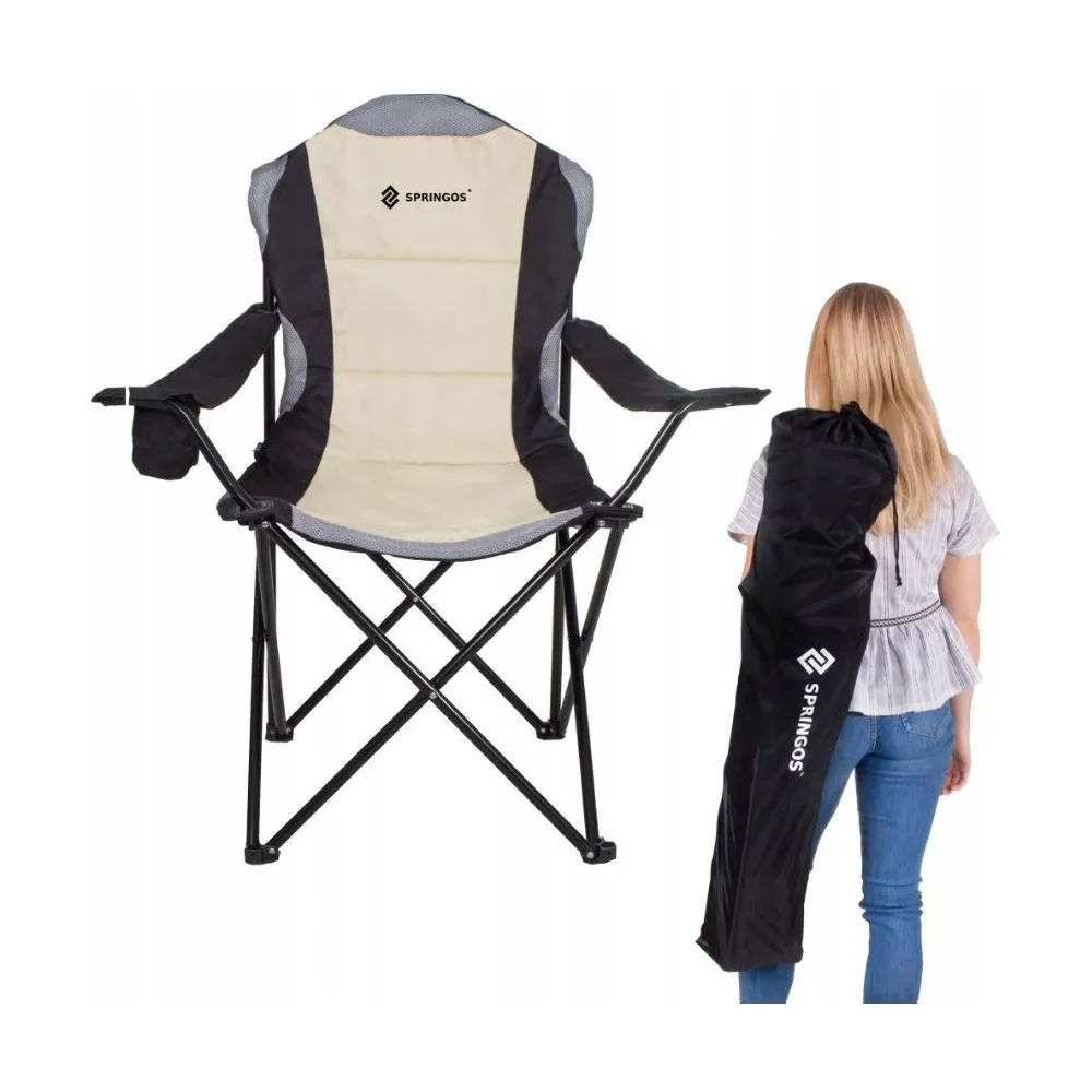Kempingové kreslo SPRINGOS COSTA PREMIUM XXL béžovo-čierne
