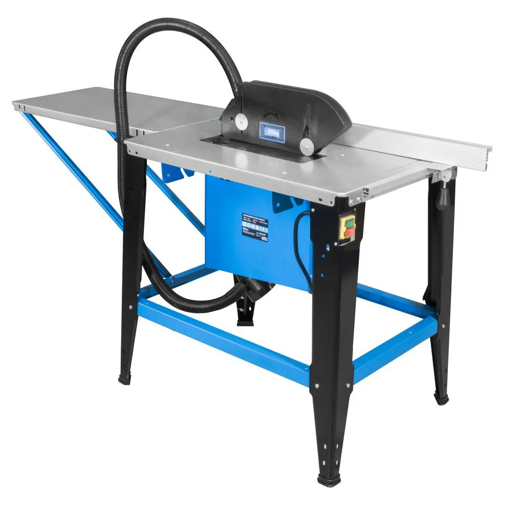 Stolová píla s pozinkovaným pracovným stolom, pozdĺžnym a uhlovým dorazom. Nastavenie výšky pílového kotúča pomocou kľuky, pílový kotúč je možné sklopiť o 90 ° - 45 °, pripojenie pre odsávací systém. Prepravné kolesá, riadiaca rukoväť, odnímateľný nadstavec na stôl, 1x pílový kotúč HM.