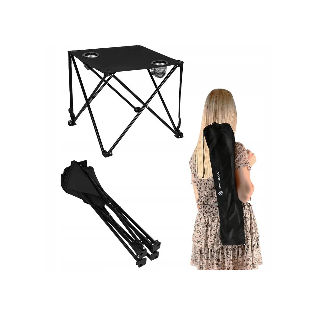 Kempingový stolík 46x46x45 cm, čierny SPRINGOS KOMPAKT