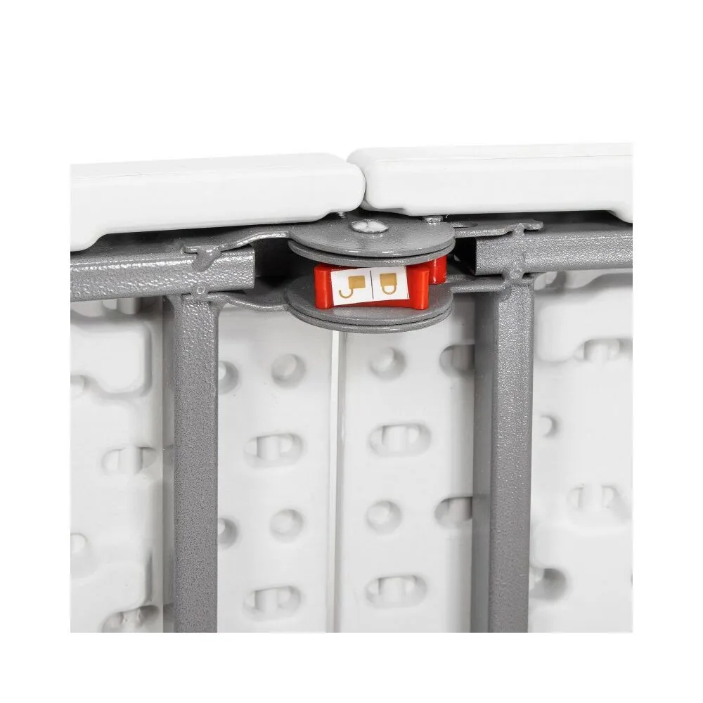 Veľký skladací stôl ideálny na rodinné oslavy, bankety a spoločenské akcie. Ponúka priestrannú plochu pre až 12 osôb, nosnosť 150 kg a stabilnú konštrukciu s bezpečnostným zámkom proti zloženiu. Je odolný voči poveternostným vplyvom, ľahko sa udržuje a je možné ho zložiť do kompaktného kufra s rukoväťou pre pohodlné prenášanie. Rozmery 240x75x75 cm (dxšxv).