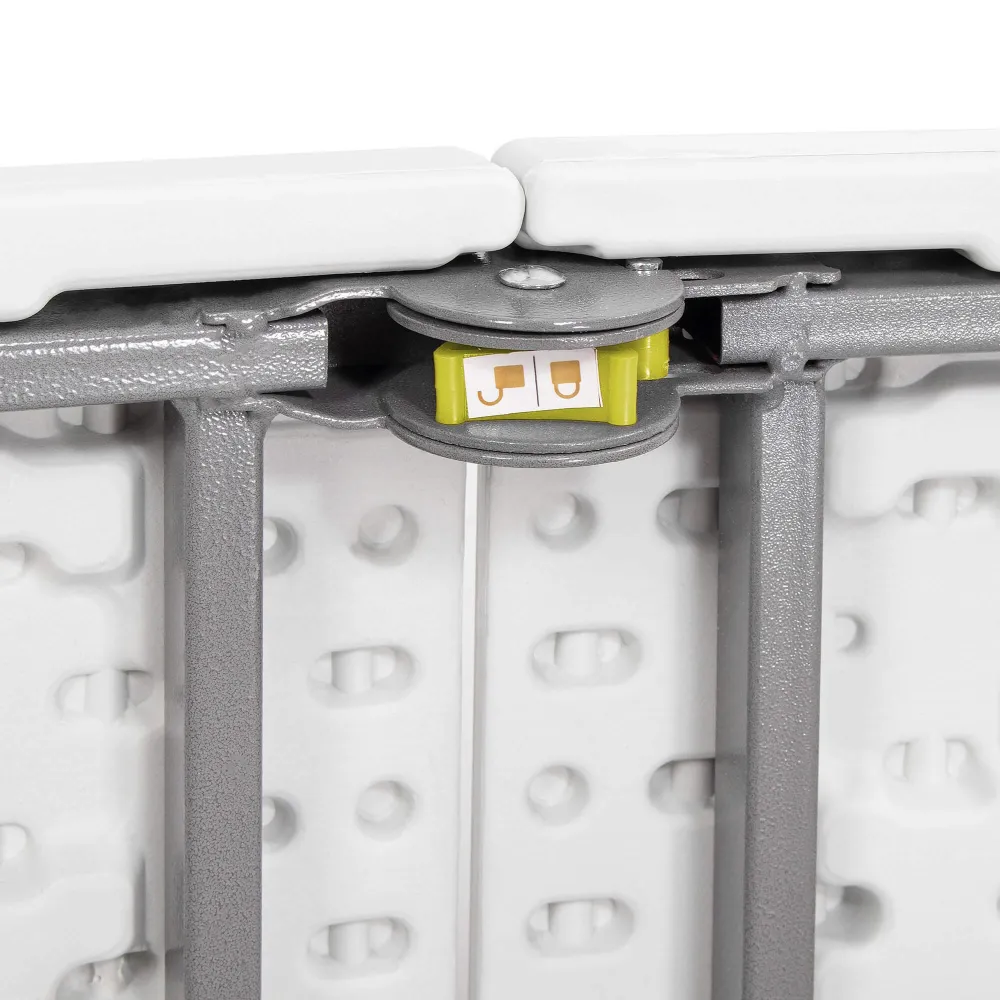 Stôl je vyrobený z materiálov odolných voči poveternostným podmienkam , čo umožňuje jeho využitie aj vo vonkajšom prostredí. Skladacie prevedenie s praktickým zámkom proti samovoľnému zloženiu a pohodlnou rukoväťou uľahčuje manipuláciu aj prepravu – po zložení sa ľahko zmestí do kufra auta. Jednoduchá údržba a univerzálna biela farba z neho robia funkčný a estetický doplnok pre každú príležitosť.