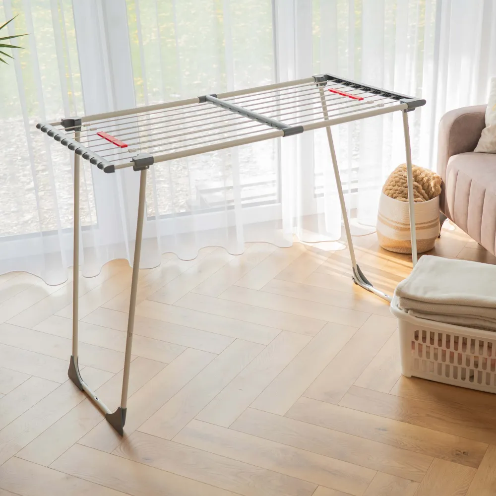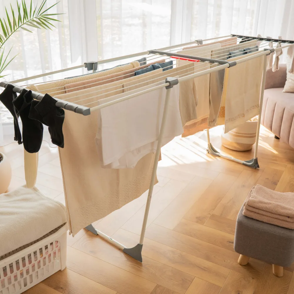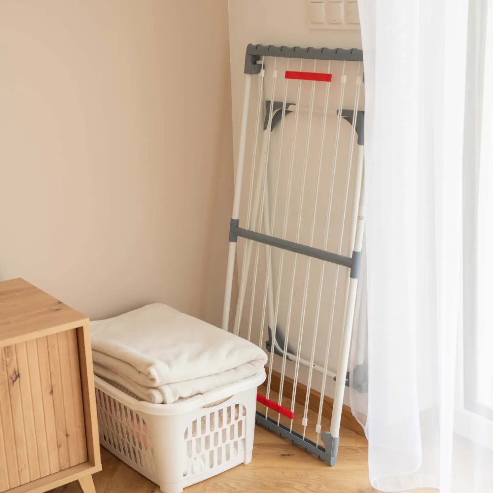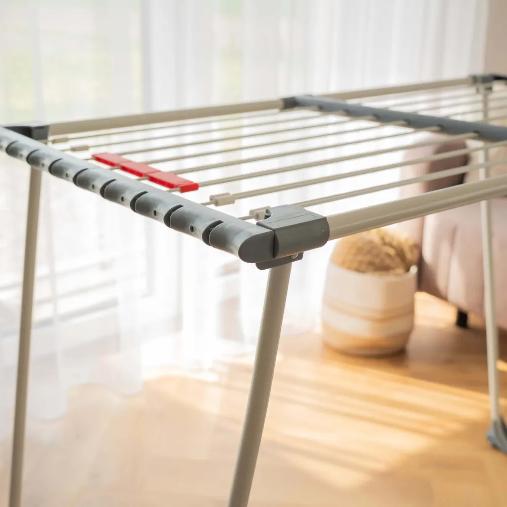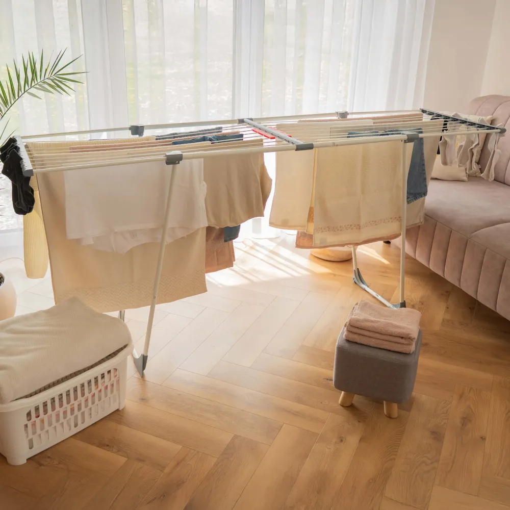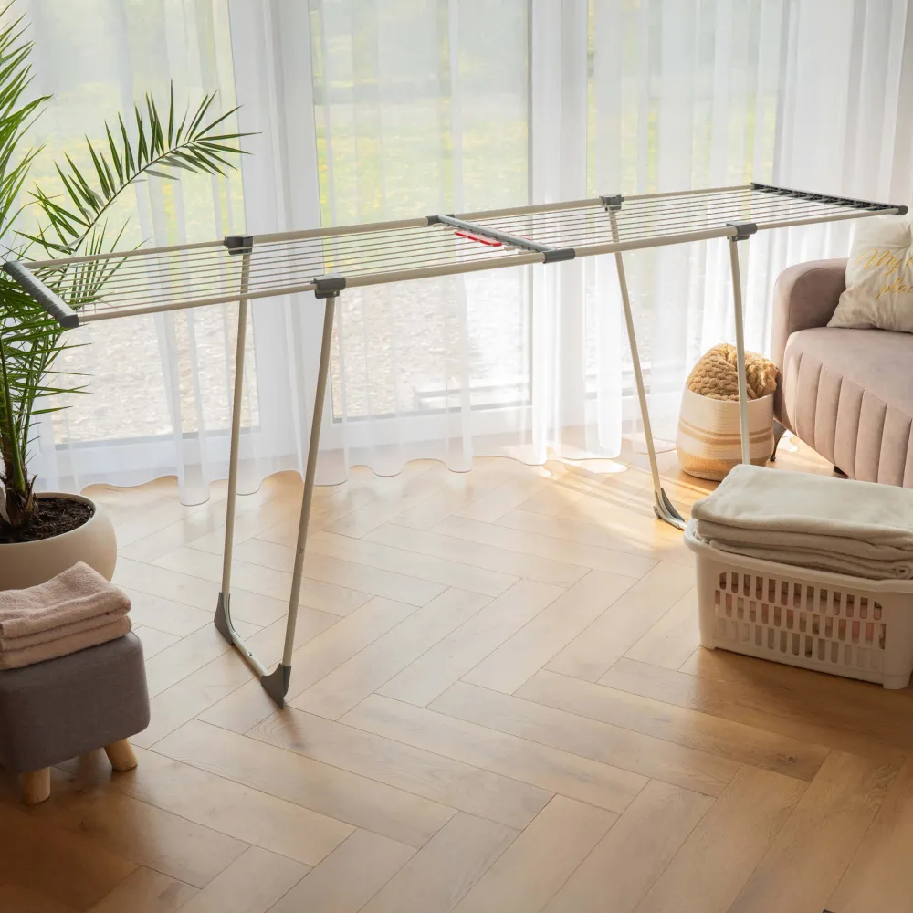 Vďaka zabudovaným kolieskam je možné sušiak jednoducho premiestniť aj v plne naloženom stave. Po použití ho ľahko zložíte a uložíte – praktická skladacia konštrukcia šetrí miesto, takže sa skvele hodí aj do menších bytov alebo domácností s obmedzeným priestorom. SPRINGOS HORIZON kombinuje funkčnosť, odolnosť a pohodlie v jednom elegantnom prevedení.
