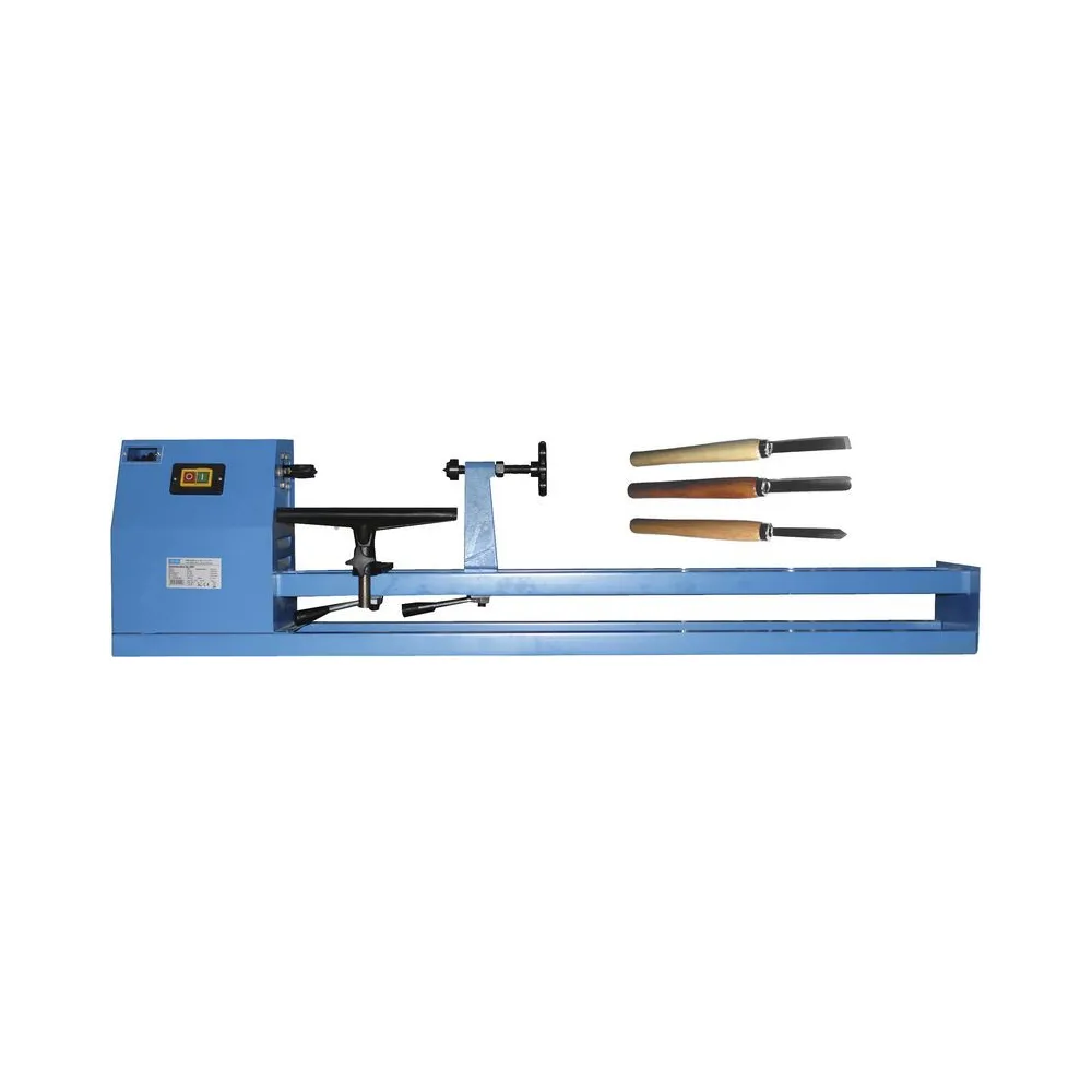 Stolný sústruh určený na bežné sústruženie rotačných/valcových/kužeľových plôch z tvrdého dreva v podmienkach domácich dielní. Štyri rýchlostné stupne otáčania vretena (manuálne nastavenie pomocou remeníc), oceľový vodiaci rám s otvormi pre montáž napevno. 3dielna sada sústružníckych dlát (drevené rukoväte/oceľové nože 100 mm). Posuvný liatinový koník s výmenným hrotom. Nastaviteľná opierka nástrojov, čelný unášač s odnímateľným krytom, spínač v ochrannom púzdre, montážne náradie.