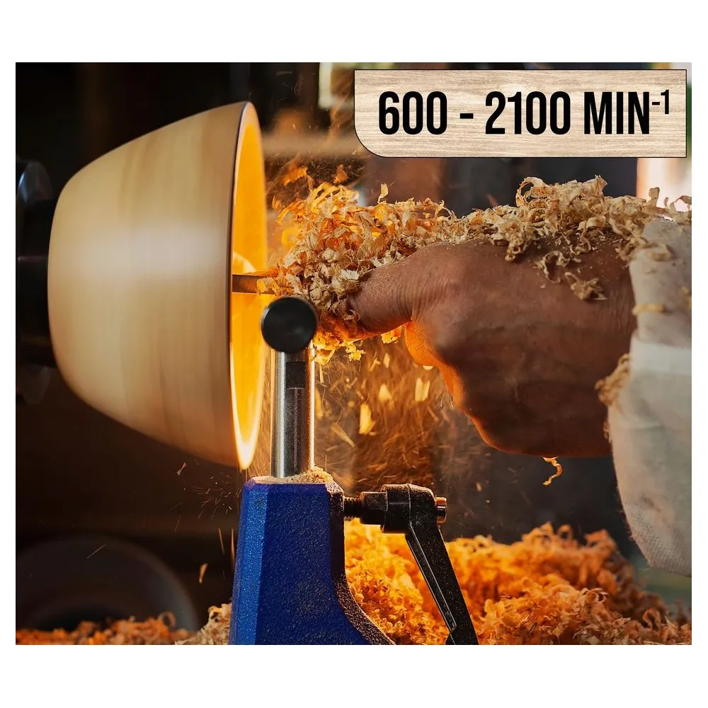 Sústruh na drevo do domácej dielne s integrovaným kopírovacím zariadením na šablóny a kópie obrobkov, na obrábanie dreva v opakovaných sériách (sústruženie pomocou kopírovacích šablón alebo kopírovanie podľa originálnej predlohy). Liatinová konštrukcia s oceľovým lôžkom a veľkým koníkom na robustnom základnom ráme. Strediaci bod, čelná doska, sústružnícky nástroj a montážne nástroje. Digitálny displej s dobrou čitateľnosťou pre okamžitú kontrolu otáčok, presné nastavenie a optimalizáciu otáčok vretena.