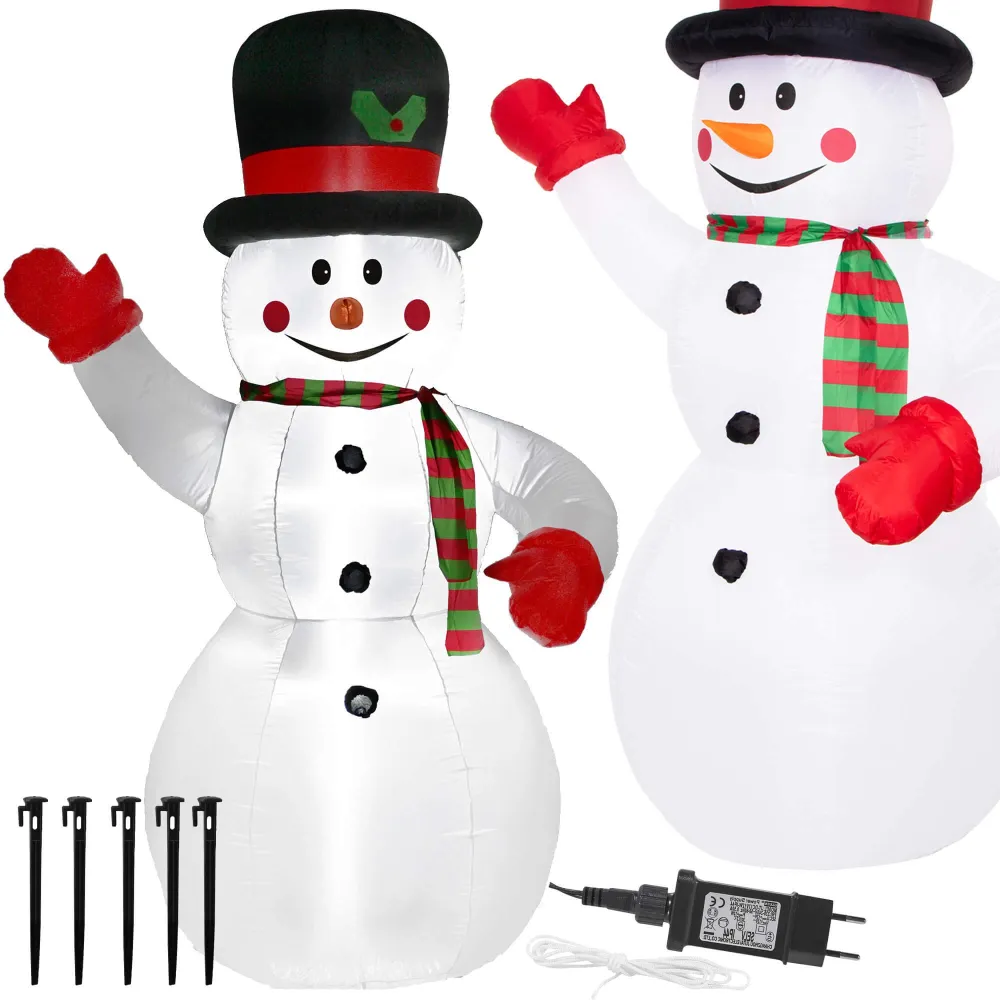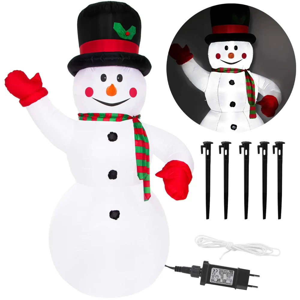Privítajte zimu s týmto elegantným a impozantným nafukovacím snehuliakom. Okamžite priťahuje pozornosť a vytvára radostnú náladu vo vašej záhrade, terase či na balkóne.