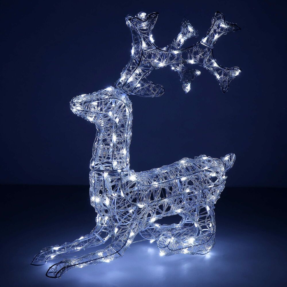 Majestátny ležiaci sob so vztýčenou hlavou, vysokým parožím a konštrukciou zdobenou výpletom. Úžasná 3D svetelná dekorácia vhodná pre vnútorné aj vonkajšie použitie, vodeodolné prevedenie, krytie IP44. Úsporné diódy, časovač, farba studená biela. Dĺžka 60 cm, 130 LED, napájací kábel 3 m.