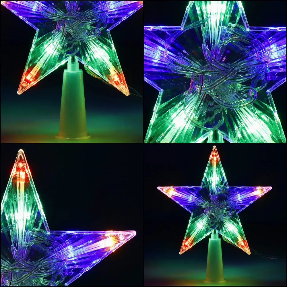 Dekoratívna svietiaca hviezda na vianočný stromček. Úžasná 3D svetelná dekorácia vhodná na vnútorné použitie, úsporné diódy, krytie IP20. Napájanie 3xAA, farba multicolor. Výška 17,5 cm, 10 LED, napájací kábel 30 cm.