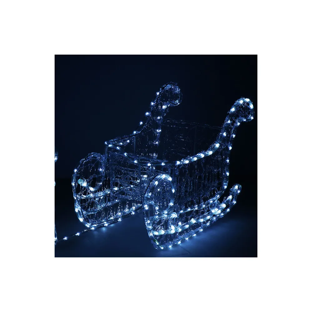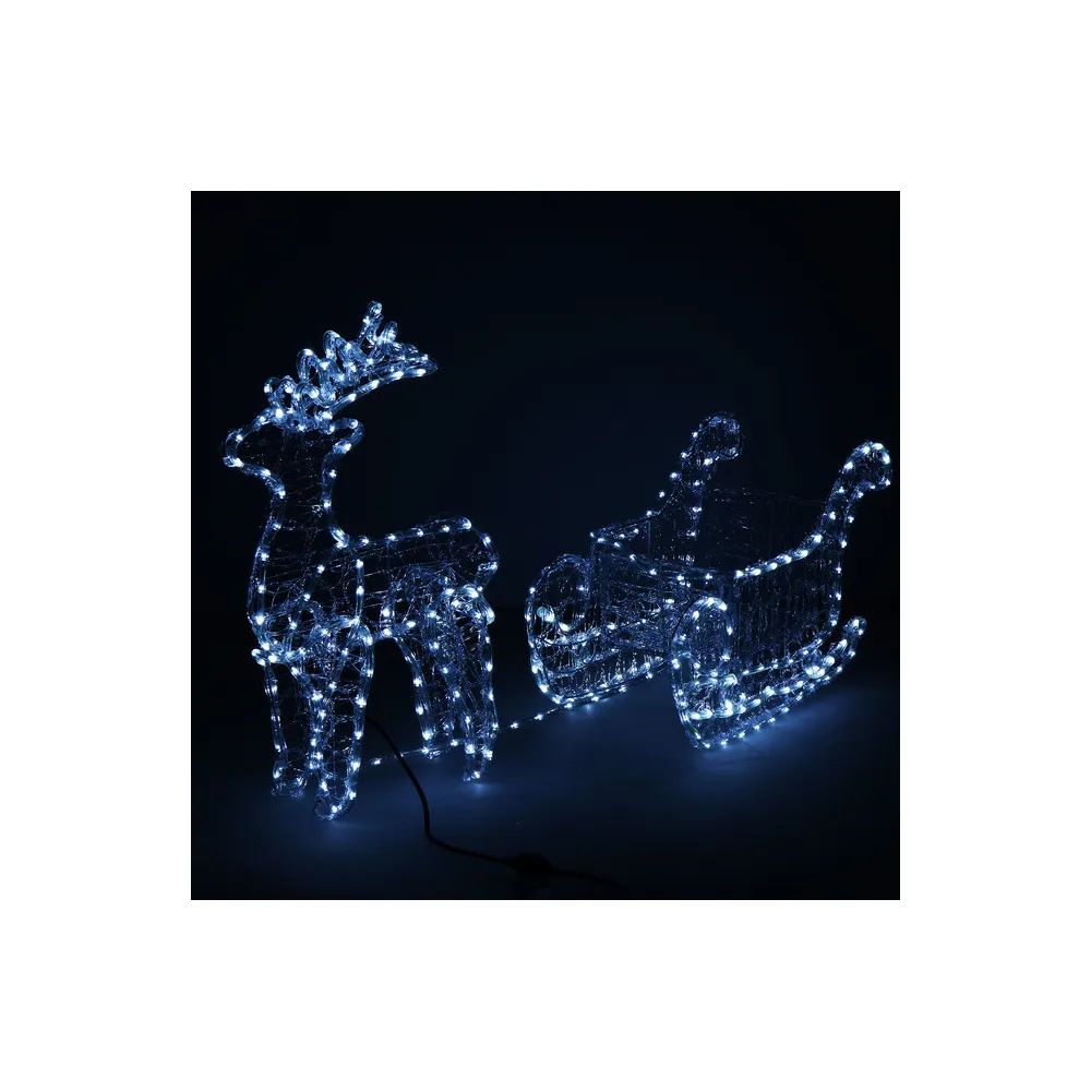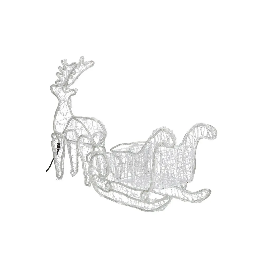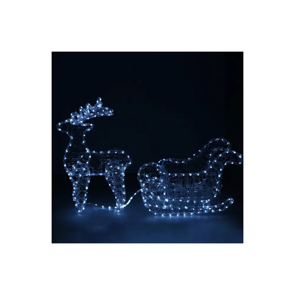 Majestátny sob so saňami, vysokým parožím a konštrukciou zdobenou výpletom. Úžasná 3D svetelná dekorácia vhodná pre vnútorné aj vonkajšie použitie, vodeodolné prevedenie, krytie IP44. Úsporné diódy, farba studená biela. Dĺžka 150 cm, 312 LED, napájací kábel 2 m.