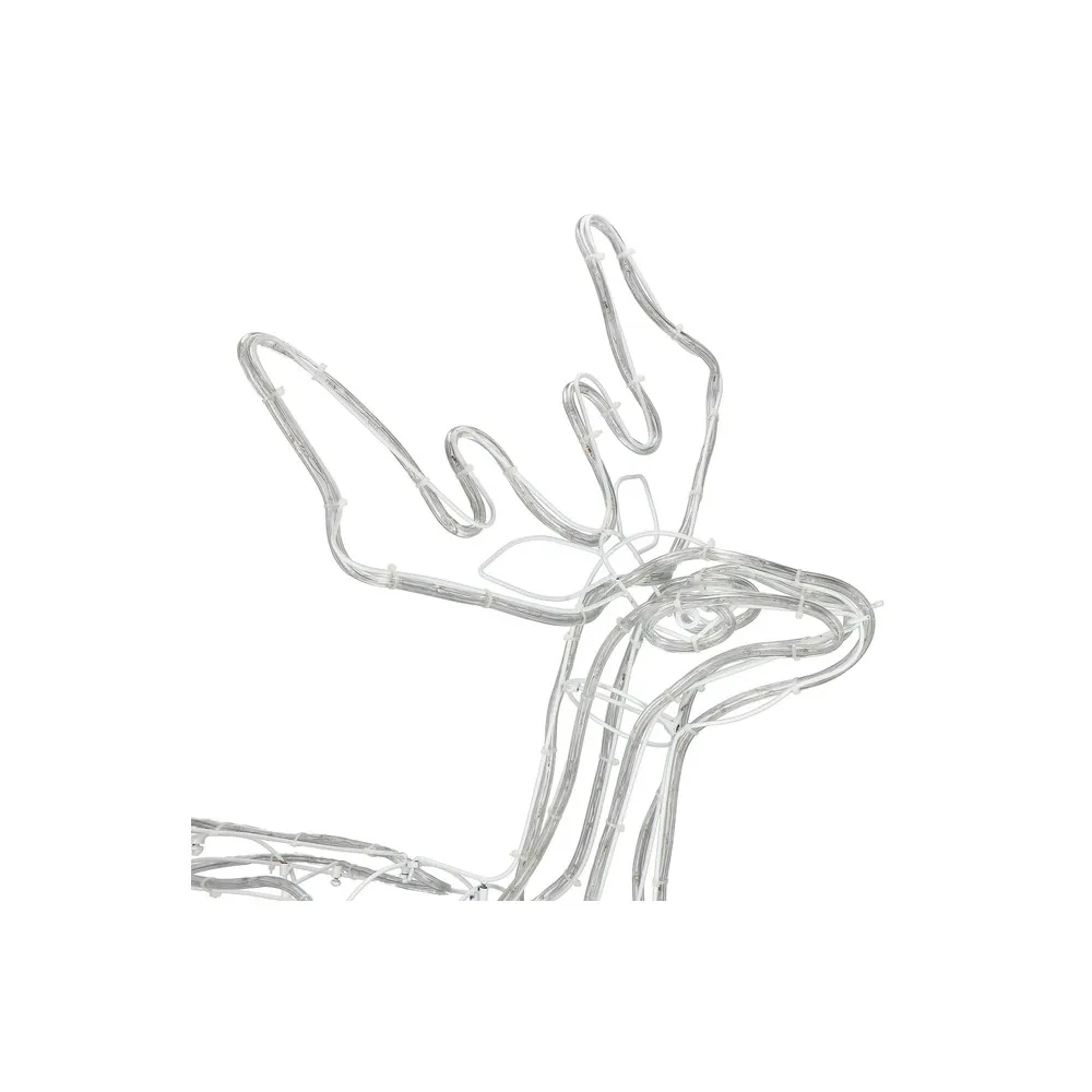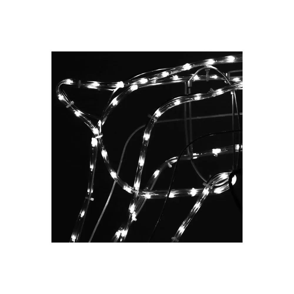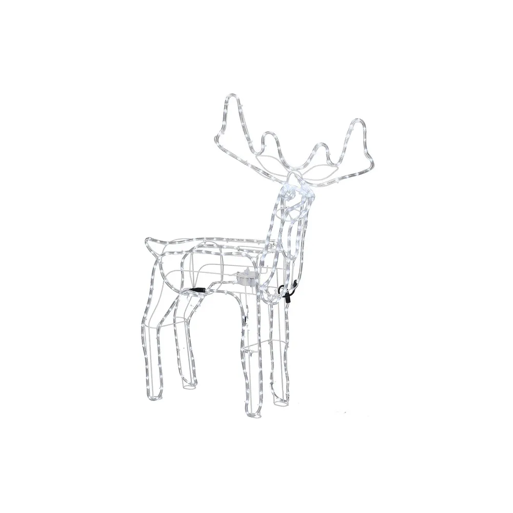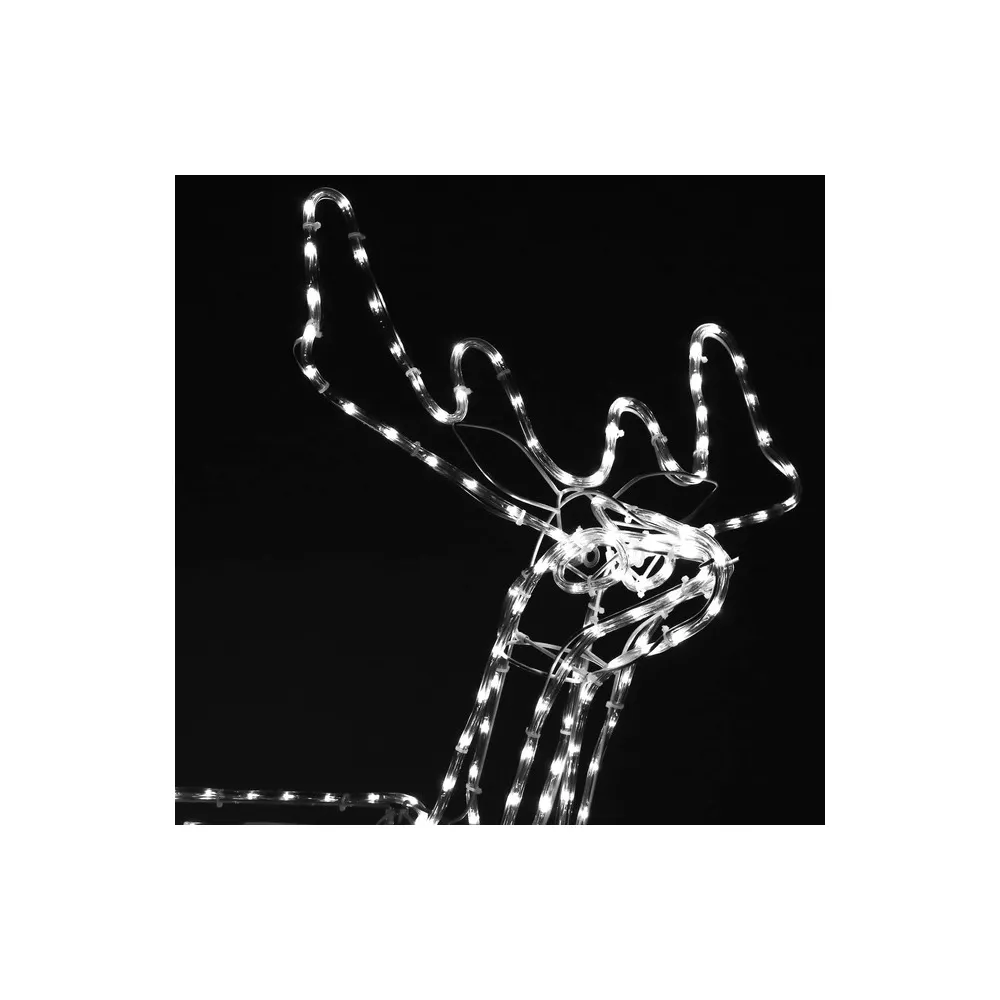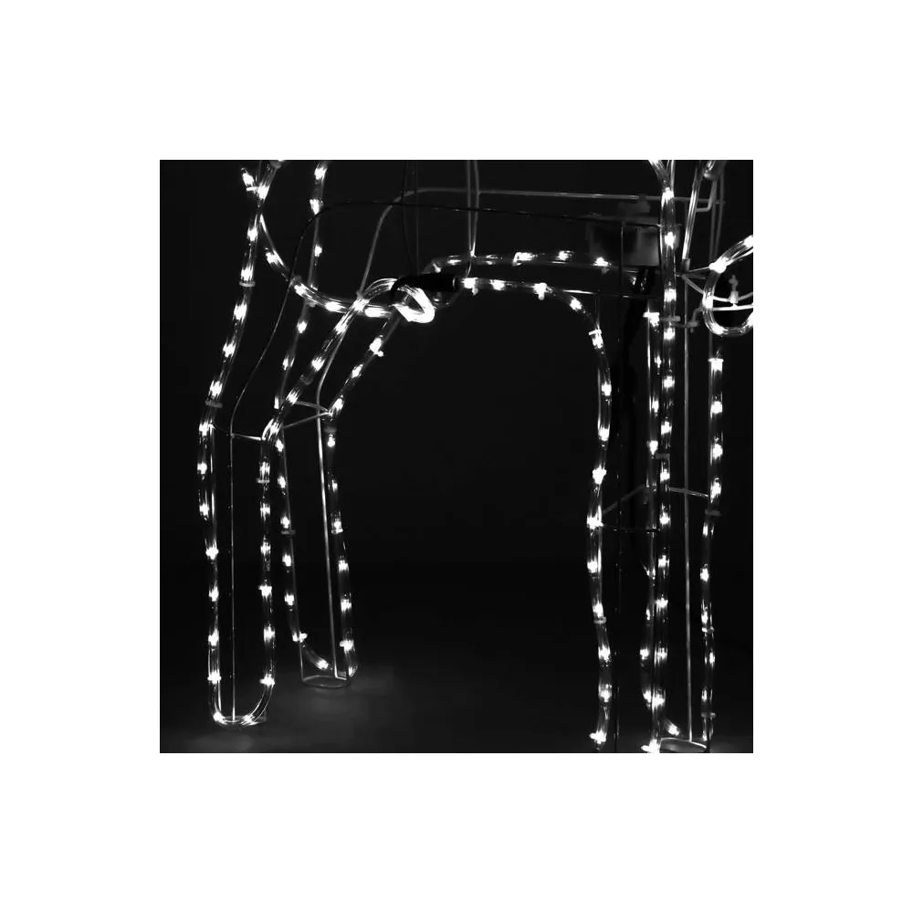Vysoký sob s pohyblivou hlavou zo strany na stranu - 3D svetelná dekorácia vhodná na vnútorné i vonkajšie použitie, vodeodolné prevedenie s krytím IP44, výška 115 cm, 288 LED, farba ľad studená biela, 2 m napájací kábel. Certifikácia CE, RoHS.