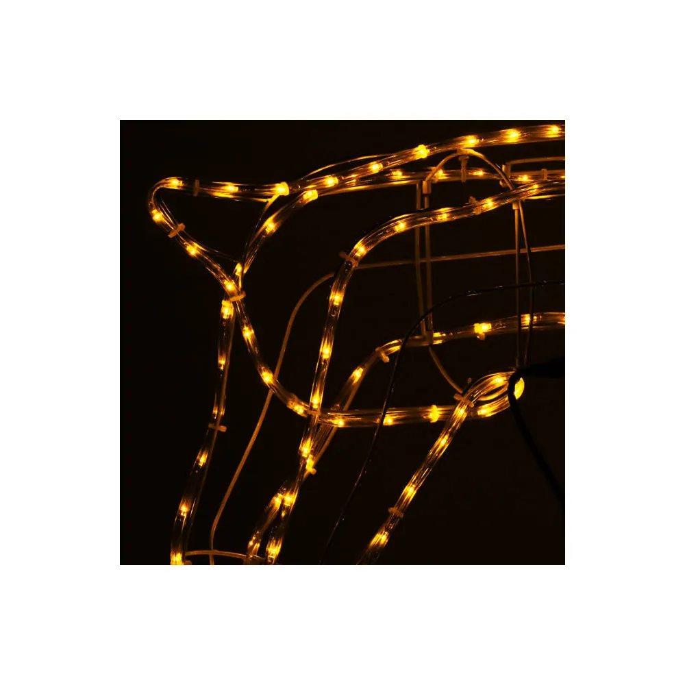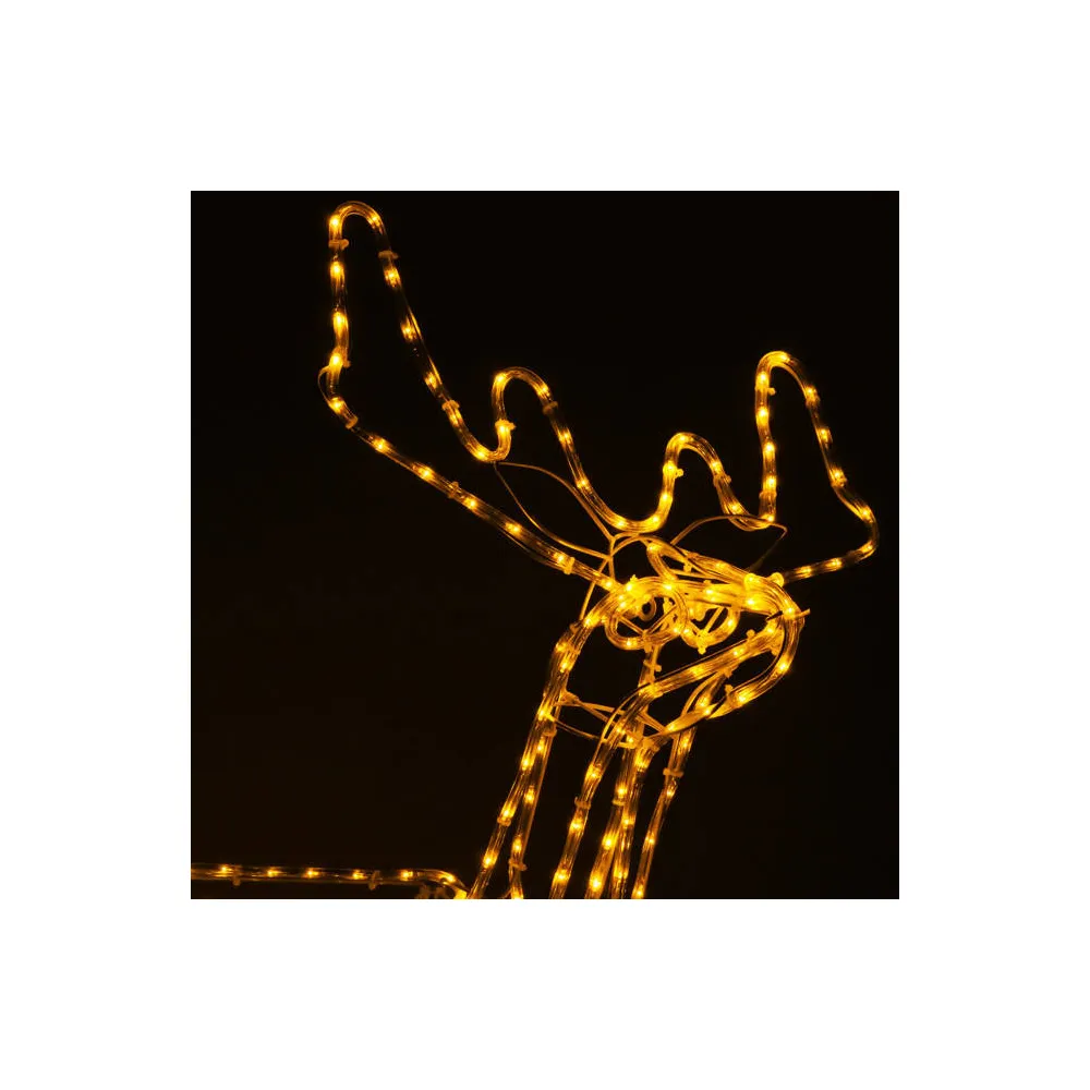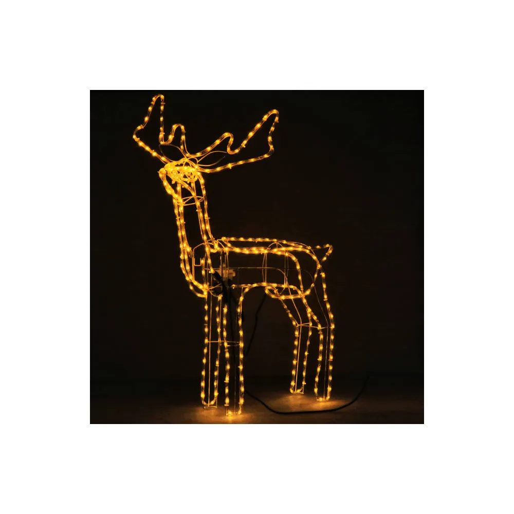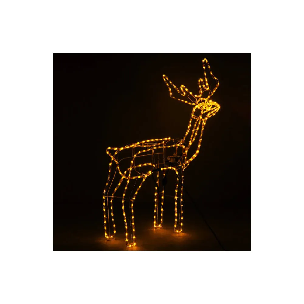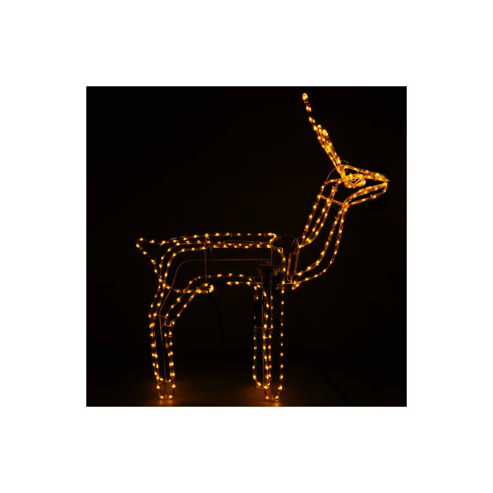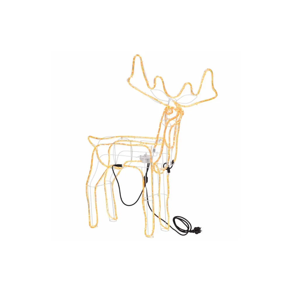 Vysoký sob s pohyblivou hlavou zo strany na stranu. Úžasná 3D pohyblivá dekorácia vhodná pre vnútorné aj vonkajšie použitie, vodeodolné prevedenie, krytie IP44. Úsporné diódy, farba teplá biela. Výška 115 cm, 288 LED, napájací kábel 2 m.